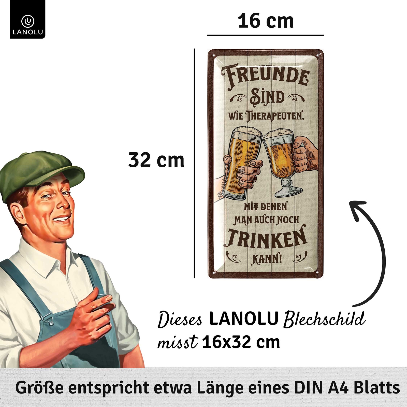 Willst du deine Bar, deinen Partykeller oder deine Werkstatt aufpeppen? Dieses retro Blechschild mit Bier-Spruch ist genau das Richtige! Mit den Maßen 30x40cm ist es ein echter Hingucker. Das Schild ist aus stabilem Stahlblech gemacht und hat einen scharfen Druck in kräftigen Farben. Dank der vier vorgebohrten Löcher an den Ecken kannst du es ganz einfach aufhängen - oder mit einer Kordel als Hängeschild befestigen. Das Design kommt direkt aus Berlin und ist total im Vintage-Look gehalten. Perfekt also als Geschenk für den Papa, den besten Freund oder einfach für dich selbst! Ob in der Grill-Ecke, an der Theke oder im Garten - dieses Schild sorgt immer für gute Laune und Gesprächsstoff. Und keine Sorge um die Qualität: Das Blech ist besonders dick und mit Klarlack überzogen, damit es auch nach Jahren noch gut aussieht. Also, wenn du deinem Zuhause einen besonderen Touch verleihen willst, ist dieses Blechschild genau das, was du brauchst. Mach's dir gemütlich und lass das Schild für dich sprechen!