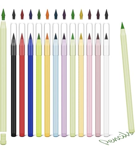 Total genial - diese Bleistifte brauchen keine Mine! 12 Stifte in verschiedenen Farben plus 48 Ersatzfedern aus Wolfram. Schreiben durch Reibung, ähnlich wie HB-Bleistifte. Mit Radiergummi und Dreiecksform für guten Griff. Eine Feder hält so lang wie 100 normale Bleistifte! Umweltfreundlich, kein Spitzer nötig. Perfekt für Schule, Büro oder unterwegs. Einfach ausprobieren - damit schreibt's sich wie von Zauberhand!