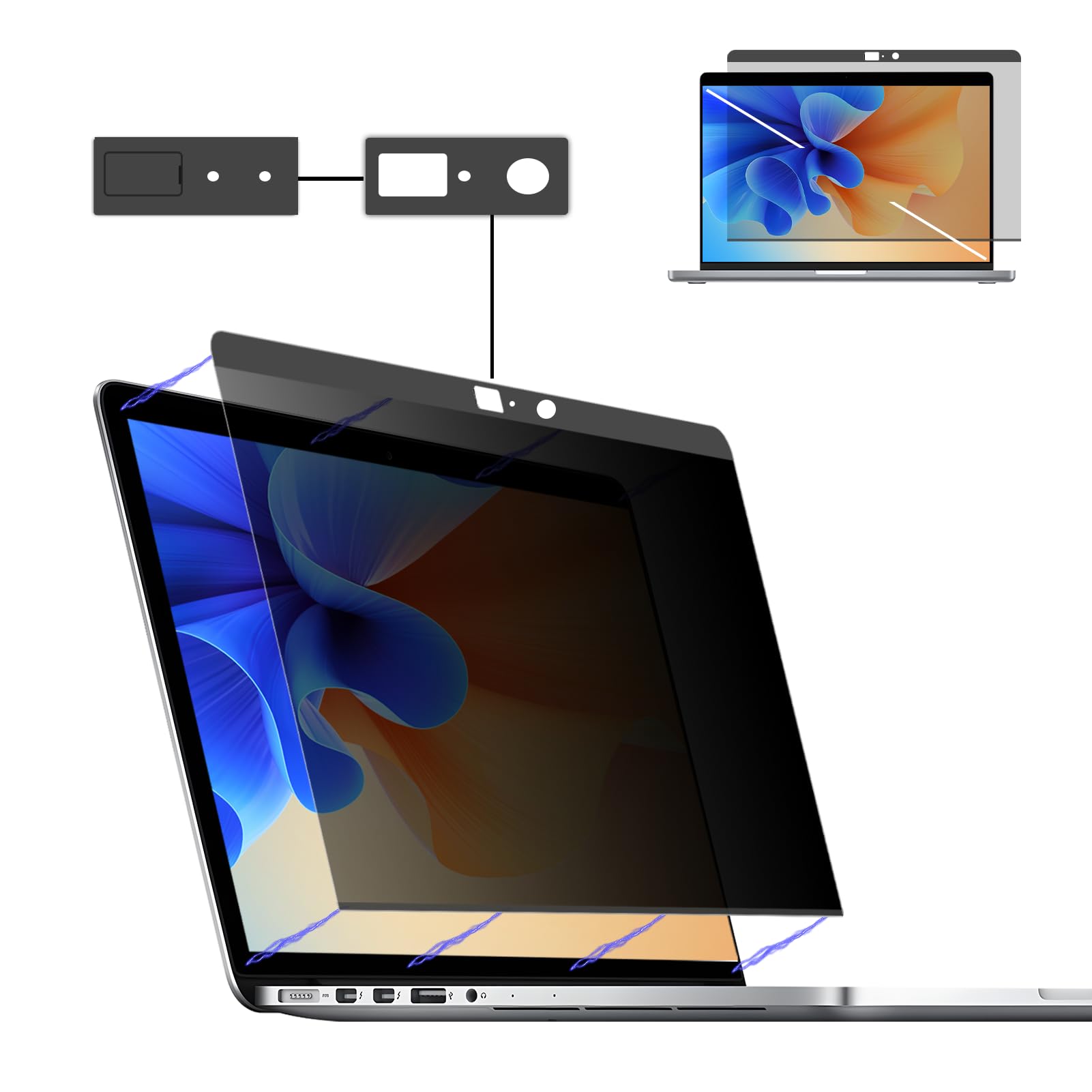 Schützen Sie Ihre Privatsphäre am MacBook! Dieser Blickschutzfilter lässt nur den direkten Blickwinkel durch - seitlich sieht niemand mit. Magnetische Halterung, kein Kleber nötig. Reduziert Blaulicht und Reflexionen. Perfekt für Büro, Bahn oder Café. Einfach anbringen und wieder abnehmen!