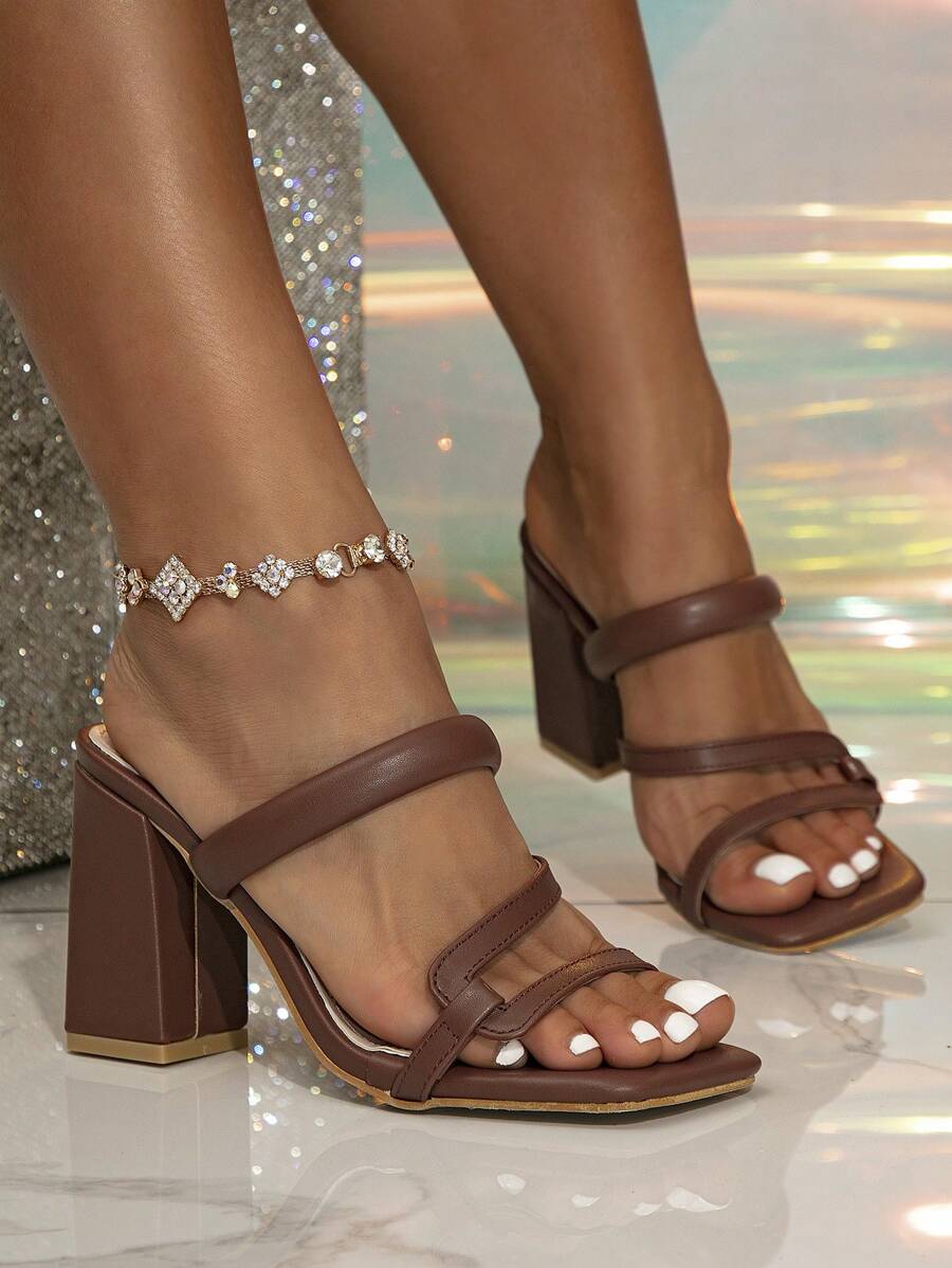 Damen Sandalen Mit Blockabsatz - Elegante Party Schuhe Mit Quadratischer Zehe