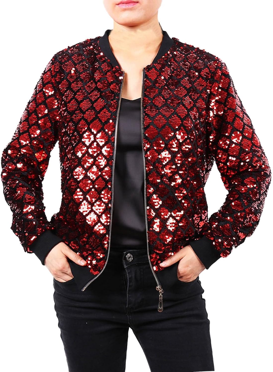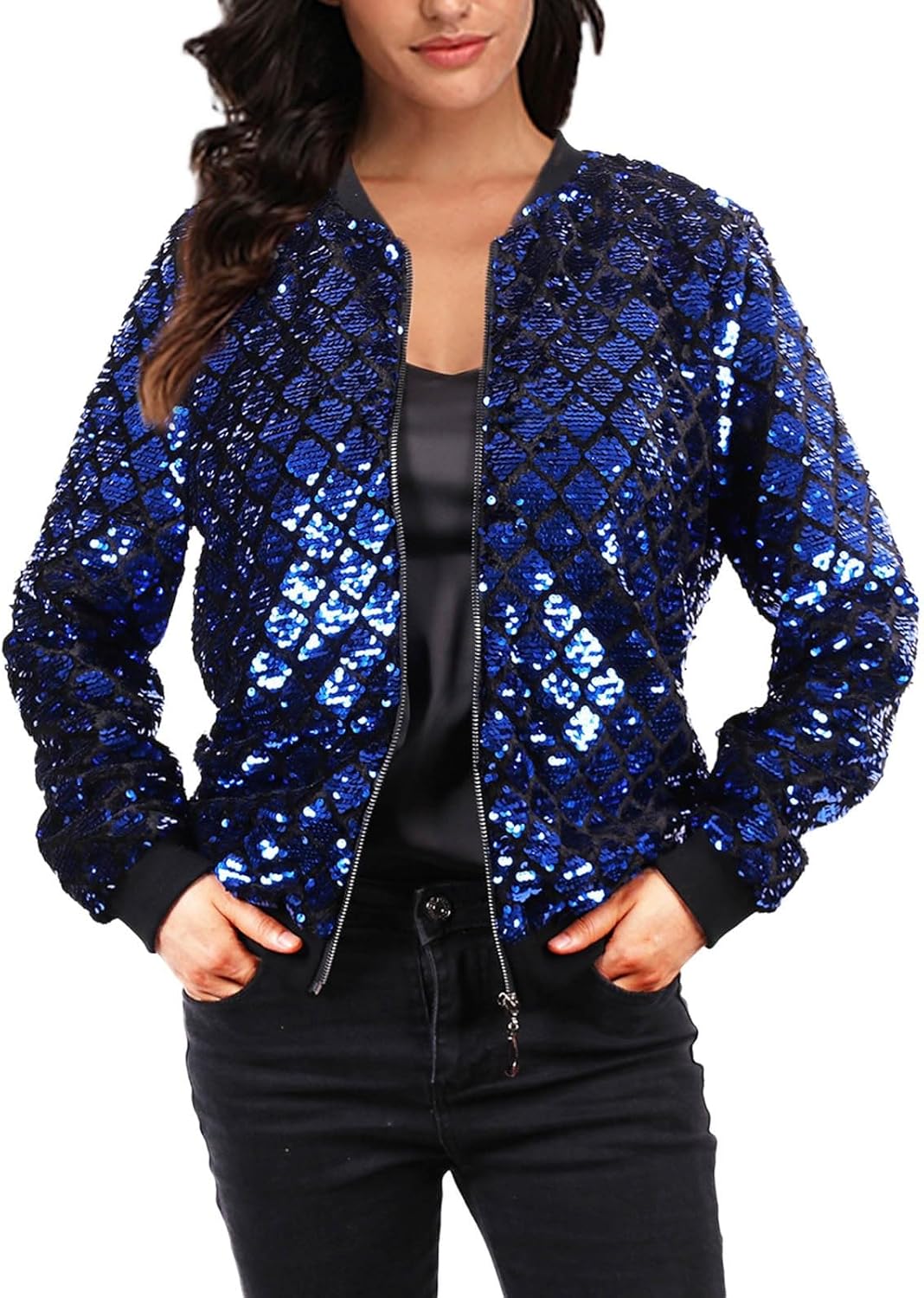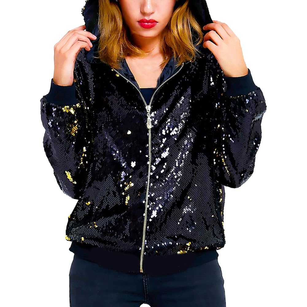 Bomberjacke Damen Glitzer Blouson - Pailletten Pilotenjacke Mit Stehkragen