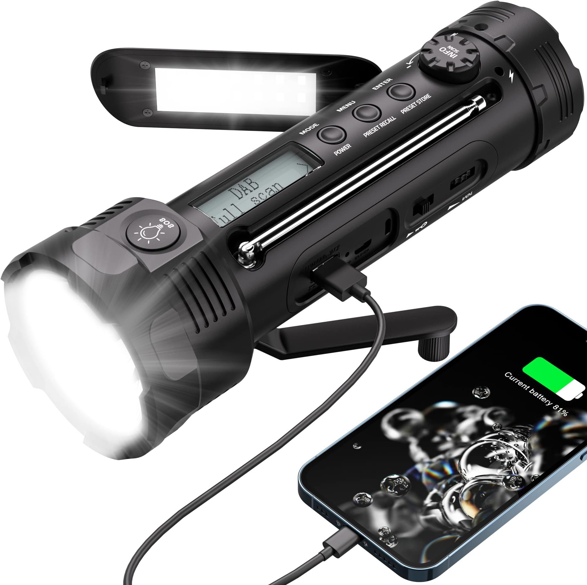 DAB+ Radio Mit Bluetooth, 5000mAh Powerbank & Lampe – Wasserdichtes Kurbelradio Für Camping & Notfall