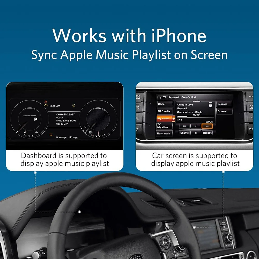 Du fährst Land Rover und willst endlich kabellos Musik hören? Dieser Bluetooth-Adapter macht's möglich! Einfach in den 30-poligen Stecker im Handschuhfach oder der Mittelkonsole einstecken und schon kannst du deine Lieblingssongs von deinem Smartphone streamen. Das coole dabei: Du behältst die volle Kontrolle über deine Musik - mit den Lenkradtasten kannst du bequem vor- und zurückspringen, ohne das Handy rauszuholen. Sogar die Songtitel werden auf dem Display angezeigt! Der Adapter läuft mit 12-24V und ist super einfach zu installieren - kein Kabelsalat, kein umständliches Gefummel. Perfekt für alle, die ihr Fahrzeug aufrüsten wollen, ohne gleich eine teure neue Anlage einzubauen. Egal ob zur Arbeit pendeln oder lange Roadtrips - mit deiner eigenen Playlist macht jede Fahrt gleich doppelt Spaß. Kompatibel mit verschiedenen Land Rover und Jaguar Modellen - am besten vorher kurz checken, ob's passt!