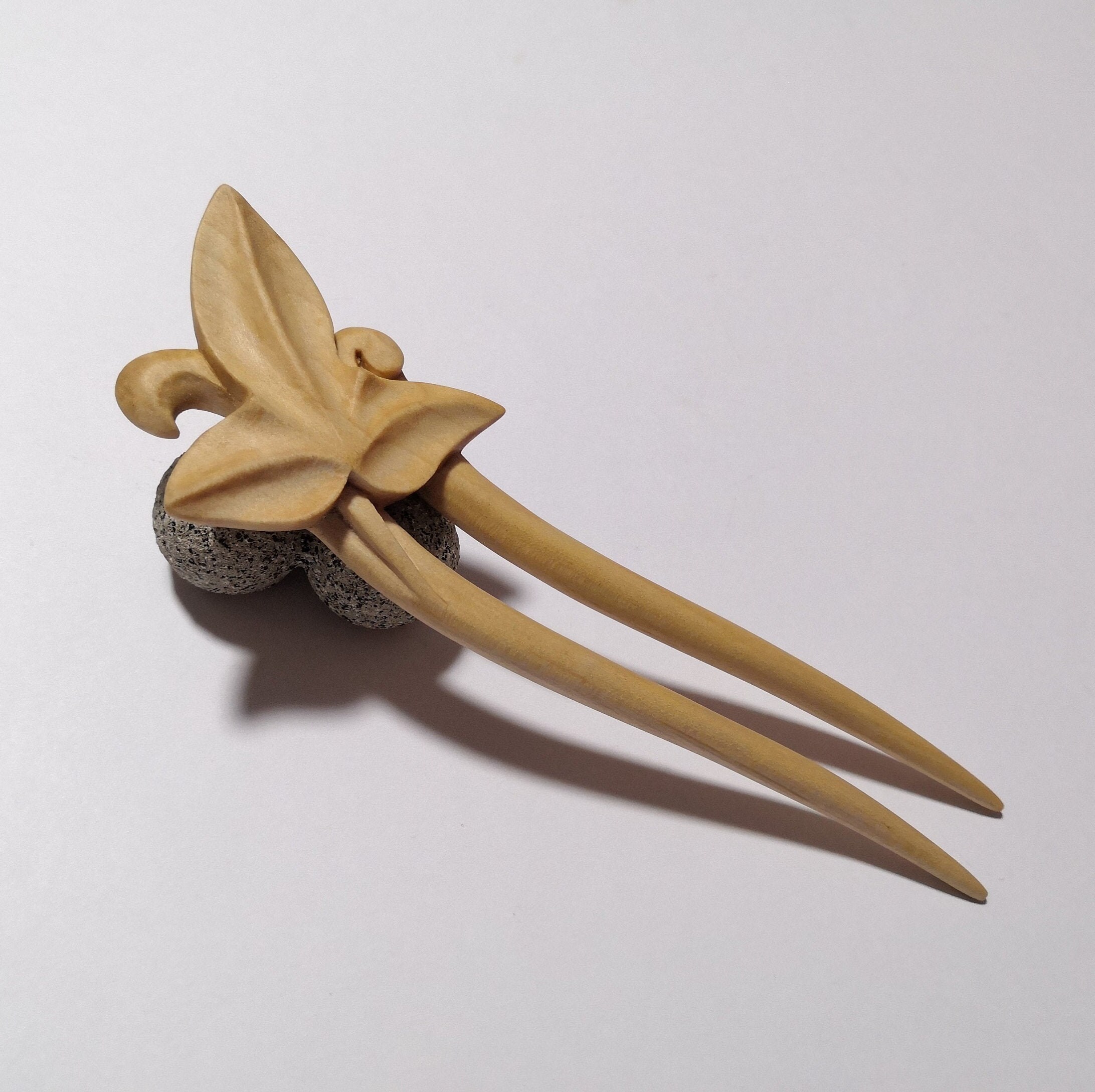 Haarnadel Holz Mit Stern-Blume - Türkiser Haarschmuck 17cm