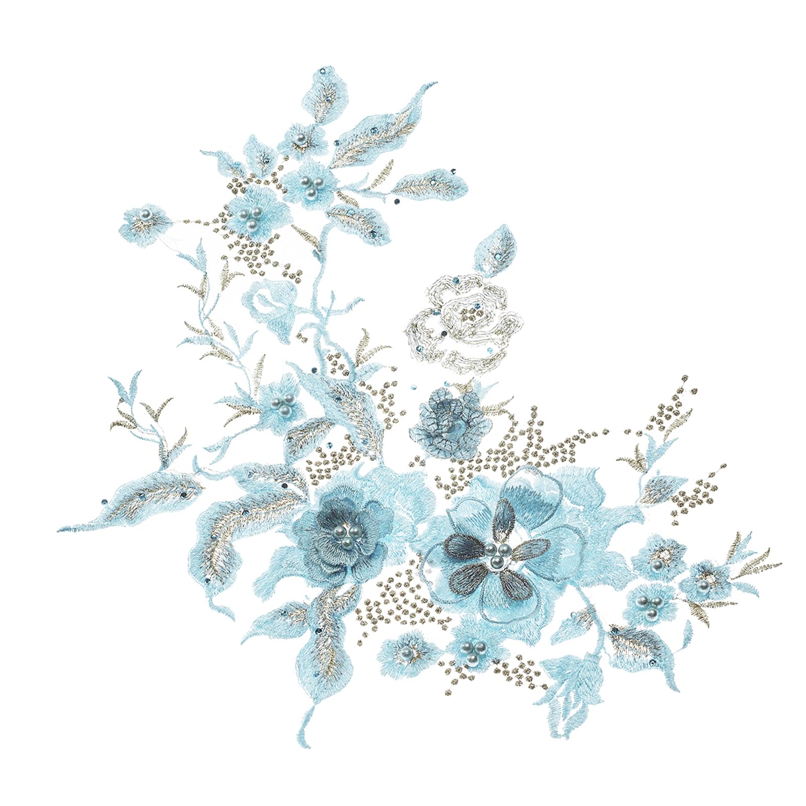 Letsinstyle 3D Blumen-Applikation - Blaue Spitze Mit Pailletten Zum Aufnähen