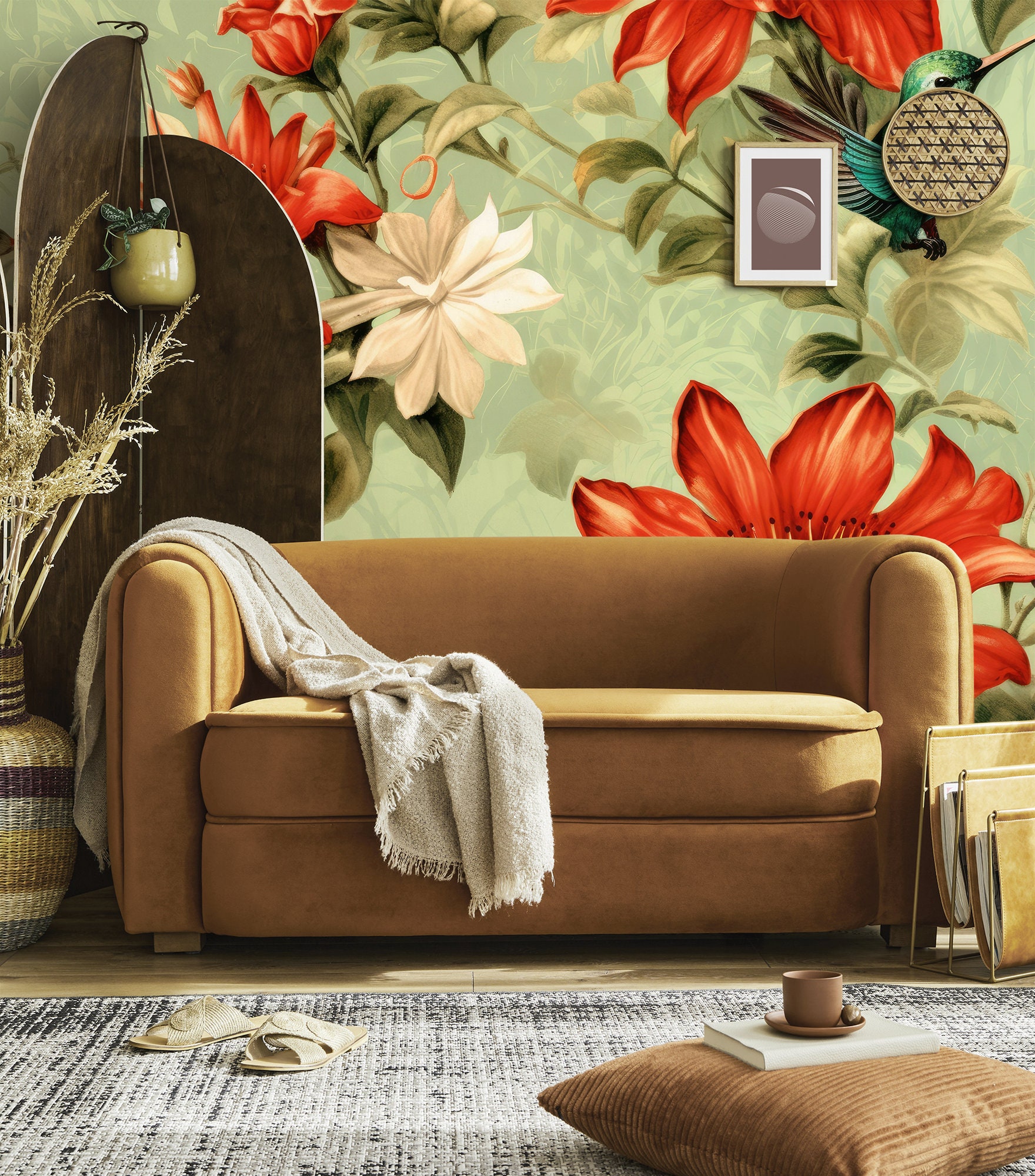 Vintage Tapete Selbstklebend - Blumen & Kolibris Design 44x300cm