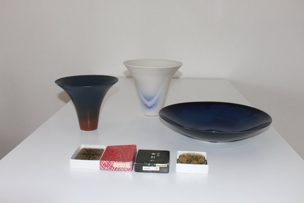 Japanische Ikebana Vase Mit Blumenfrosch - Keramik Kieselschale 17,8cm, Metallständer