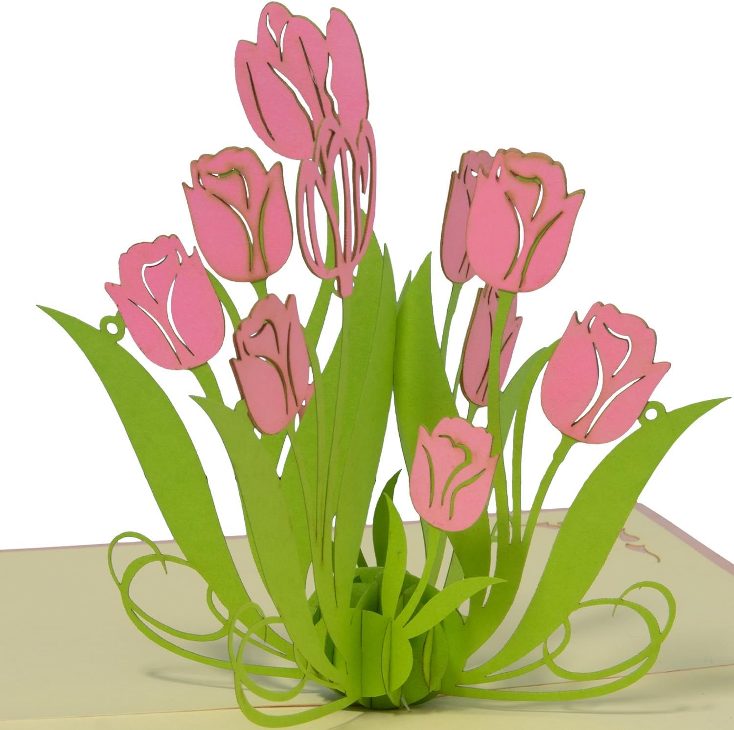 3D Pop-up Blumenkarte Mit Lilien & Tulpen - Geburtstagskarte Mit Umschlag Für Muttertag