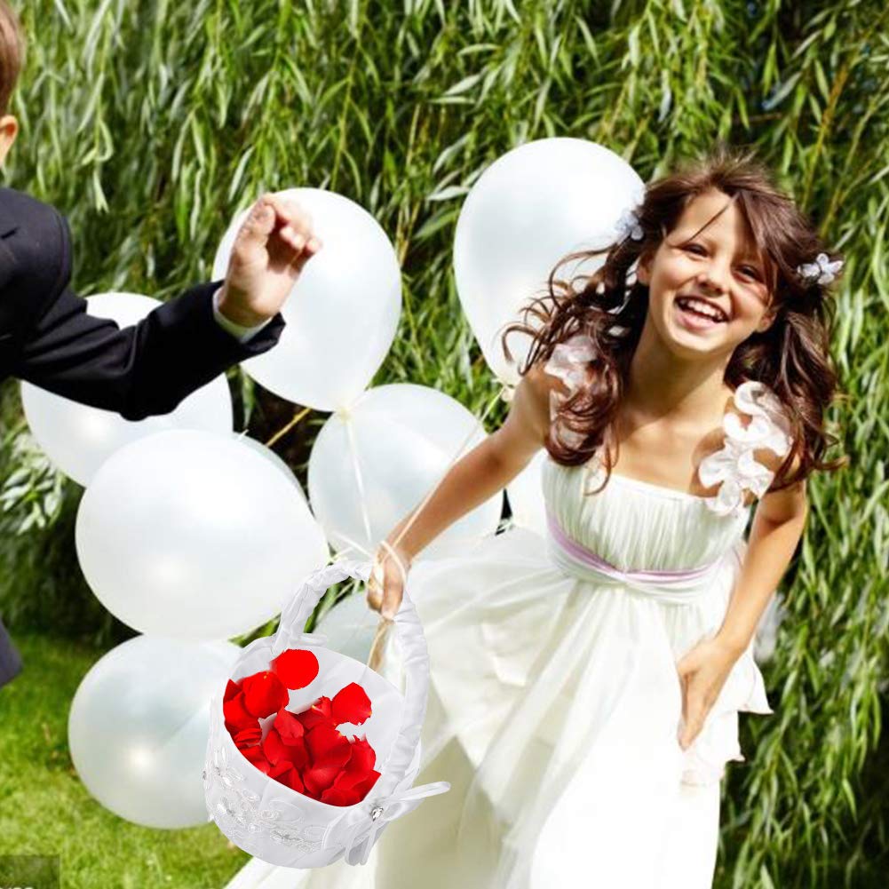 Blumenmädchen Korb Ruspela - Weißer Blumenkorb Mit Spitze Für Hochzeiten