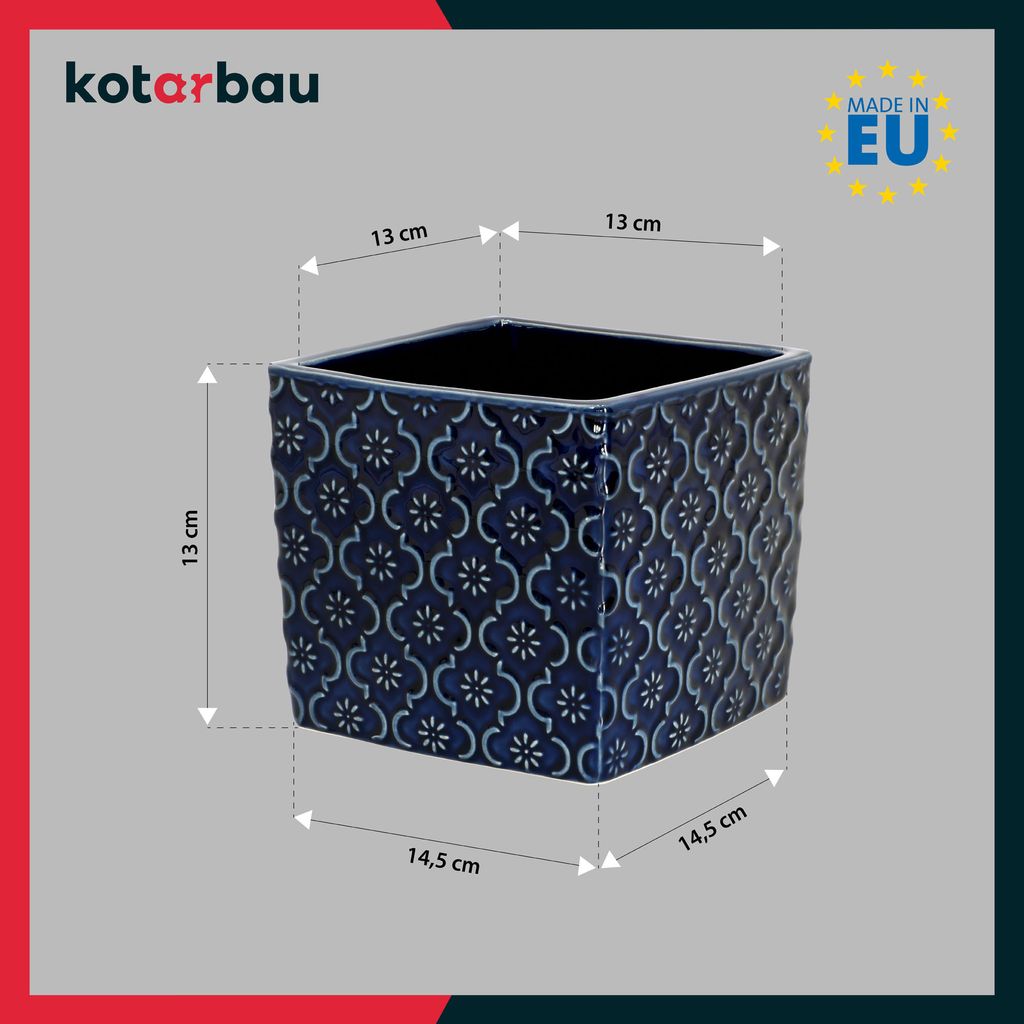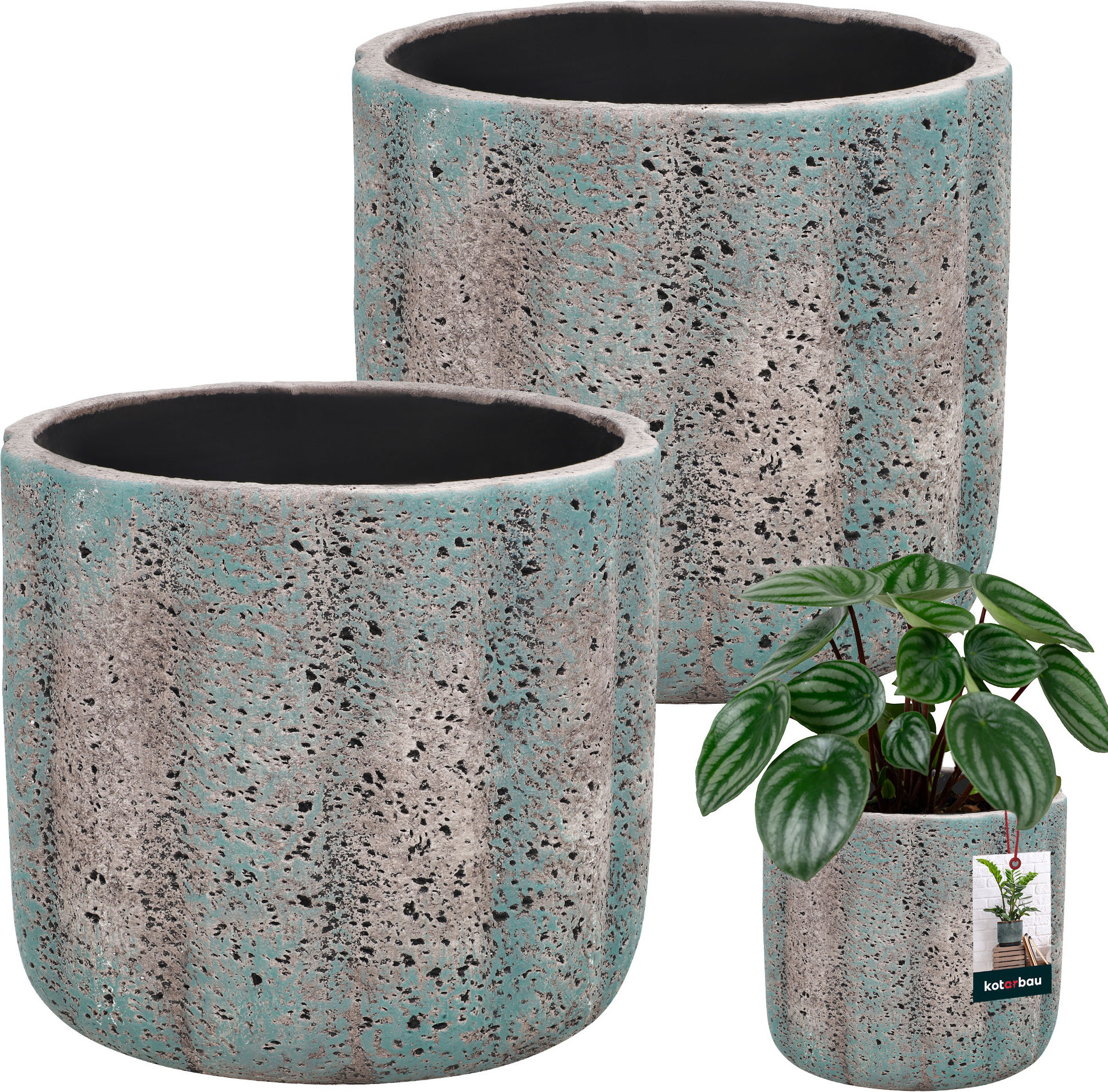 KOTARBAU® 2er Set Blumentöpfe Keramik Vintage | Fischschuppen-Muster Handarbeit | Übertopf Blau & Braun
