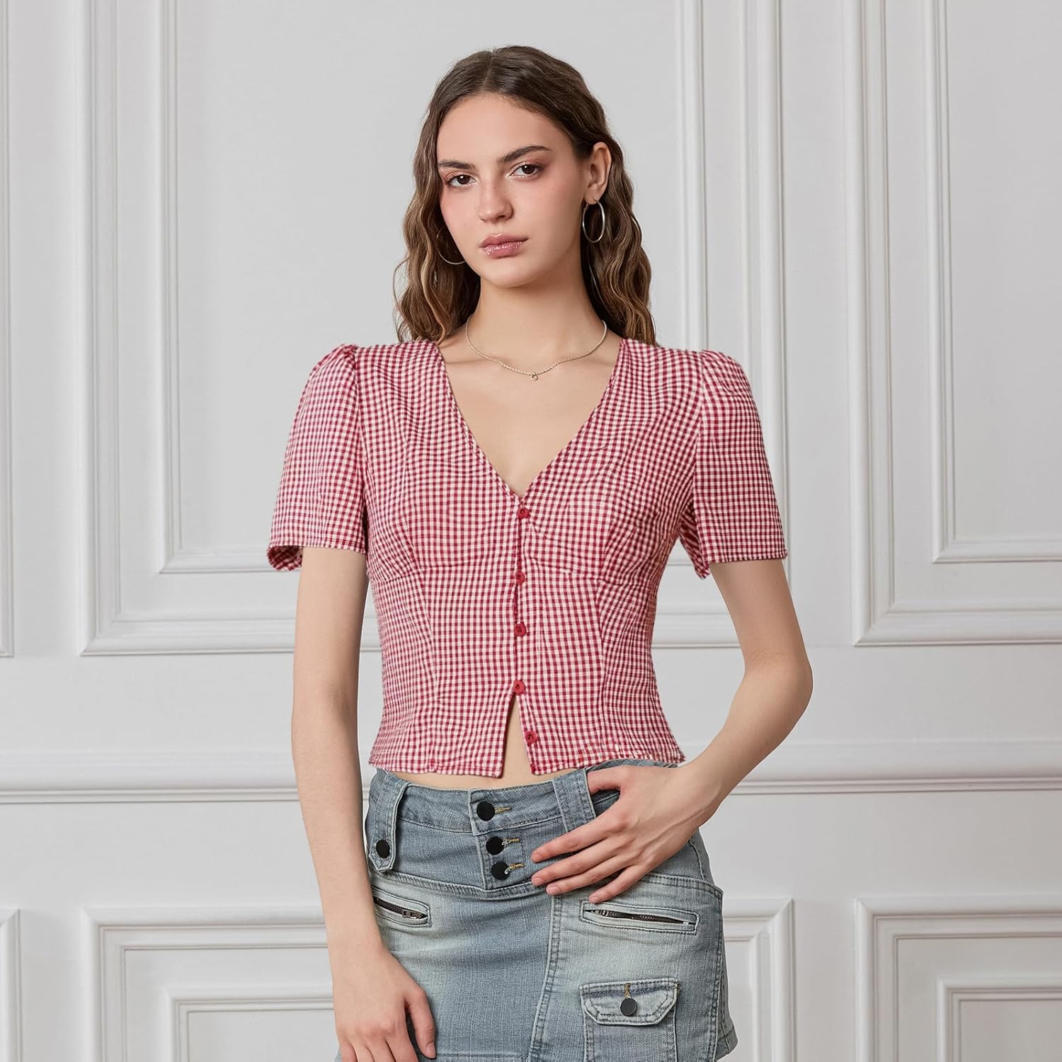 Total süße Y2K Bluse im Coquette-Style! Dieses adrette Crop Top mit Flügelärmeln und V-Ausschnitt ist voll im Vintage-Trend. Aus 100% Polyester - weich, atmungsaktiv und bequem. Mit Knopfverschluss vorne und Raffung am Rücken für die perfekte Passform. Verfügbar in Größen S/M/L. Perfekt zu Jeans, Röcken oder Shorts. Ideal für Alltag, Dating, Party oder Urlaub. Ob mit High Heels oder Sandalen - mit dieser Bluse machst du immer eine gute Figur. Der bauchfreie Schnitt und die schmale Passform betonen deine Figur optimal. Hol dir den 90er-Jahre-Look zurück!