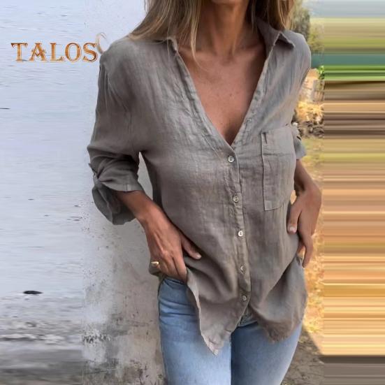 Bequemes Langarm-Bluse Für Damen - Lockere Passform & Knopfleiste