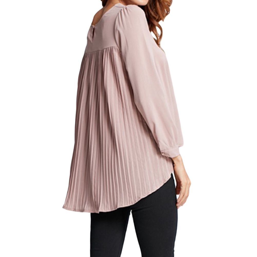 Damen Bluse Langarm Plissee - Loose Fit Casual Top