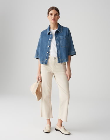 OPUS Damen Chambray Bluse - Loose Fit Jeansbluse Kurzarm