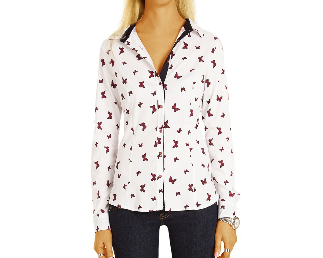 Damen Bluse Mit Schaf-Print - Langarm Hemdbluse Mit Knopfleiste