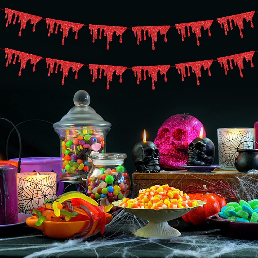 Mavouri Halloween Girlande Blut 3er Set - Grusel Deko Mit Glitzer