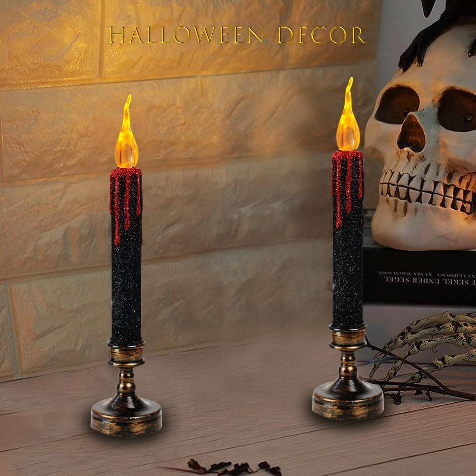 2x Halloween LED Kerzen Mit Blut-Effekt - Batteriebetrieben Für Gruselige Deko