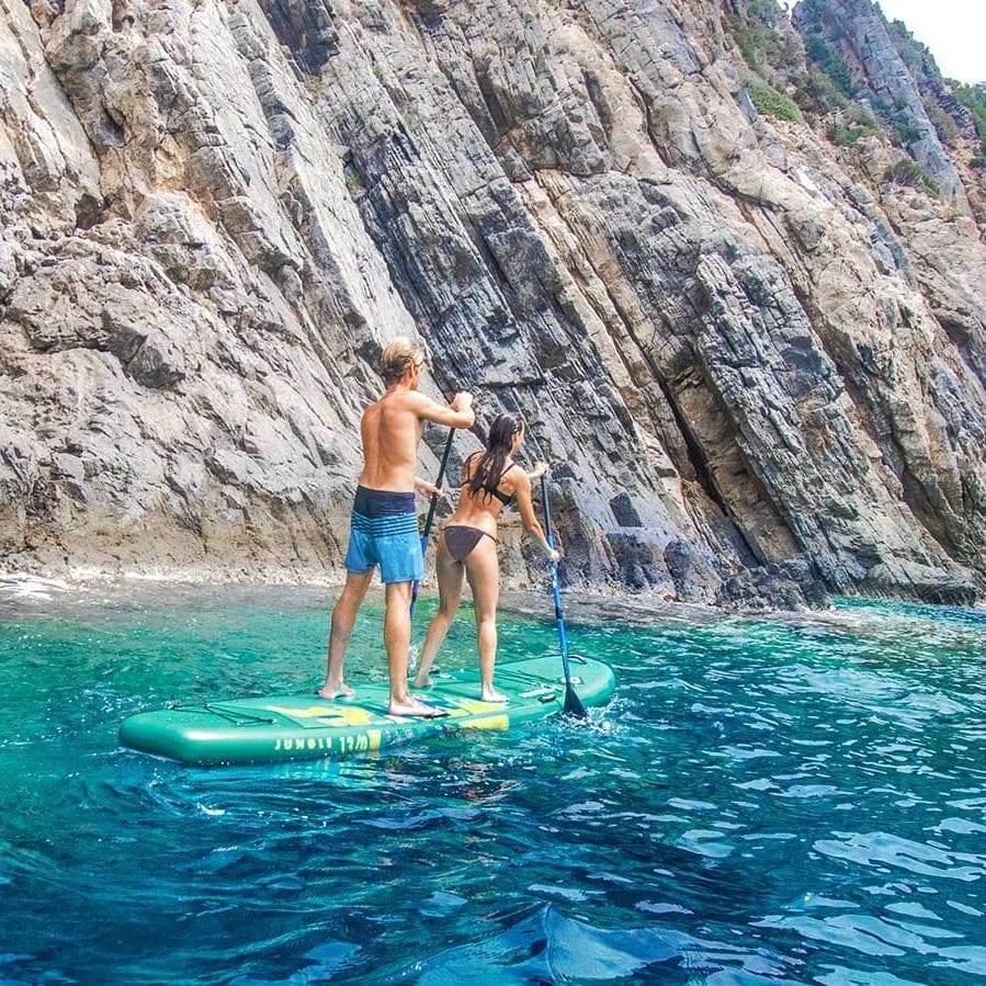 Lust auf Abenteuer auf dem Wasser? Das CampSup Zray Stand Up Paddle Board ist dein perfekter Begleiter! Als komplettes Set mit allem, was du brauchst - inklusive Aluminium-Paddel, Doppelhubpumpe mit Manometer, Sicherheitsleine und praktischem Tragerucksack. Das Allround-Board ist super stabil und damit ideal für Einsteiger, aber auch erfahrene Paddler haben ihren Spaß damit. Mit der Drop-Stitch Technologie ist es extrem stabil und trägt bis zu 130 kg - perfekt auch für kleine Touren mit Kind oder Hund. Die rutschfeste EVA-Oberfläche gibt dir sicheren Halt, und das Gepäcknetz vorne nimmt Snacks oder eine Trinkflasche auf. Nach dem Einsatz lässt es sich einfach zusammenrollen und im Rucksack verstauen - platzsparender geht's nicht! Ob auf Seen, Flüssen oder an der Küste - dieses SUP Board macht einfach Spaß und ist dein Ticket zu unbeschwerten Stunden auf dem Wasser. Einfach aufblasen und lospaddeln!