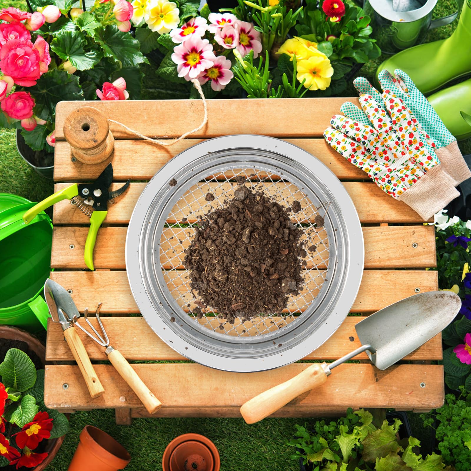 Perfekte Erde war noch nie so einfach! Dieses robuste Bodensieb aus Edelstahl hilft dir, Steine, Wurzeln und groben Schmutz aus deiner Gartenerde zu sieben. Ideal für feine Blumenerde, Kompost oder Sand. Die runde Form liegt gut in der Hand und das Edelstahl-Gitter ist verschleißfest und rostfrei. Einfach Erde rein, schütteln und schon rieselt feine, saubere Erde durch während Steine und grober Unrat oben bleiben. Super für die Beetvorbereitung, Topferde oder das Aussieben von Kompost. Leicht zu reinigen - einfach abspülen oder abbürsten. Ein unverzichtbares Werkzeug für jeden Hobbygärtner! Spart Zeit und Nerven bei der Gartenarbeit.