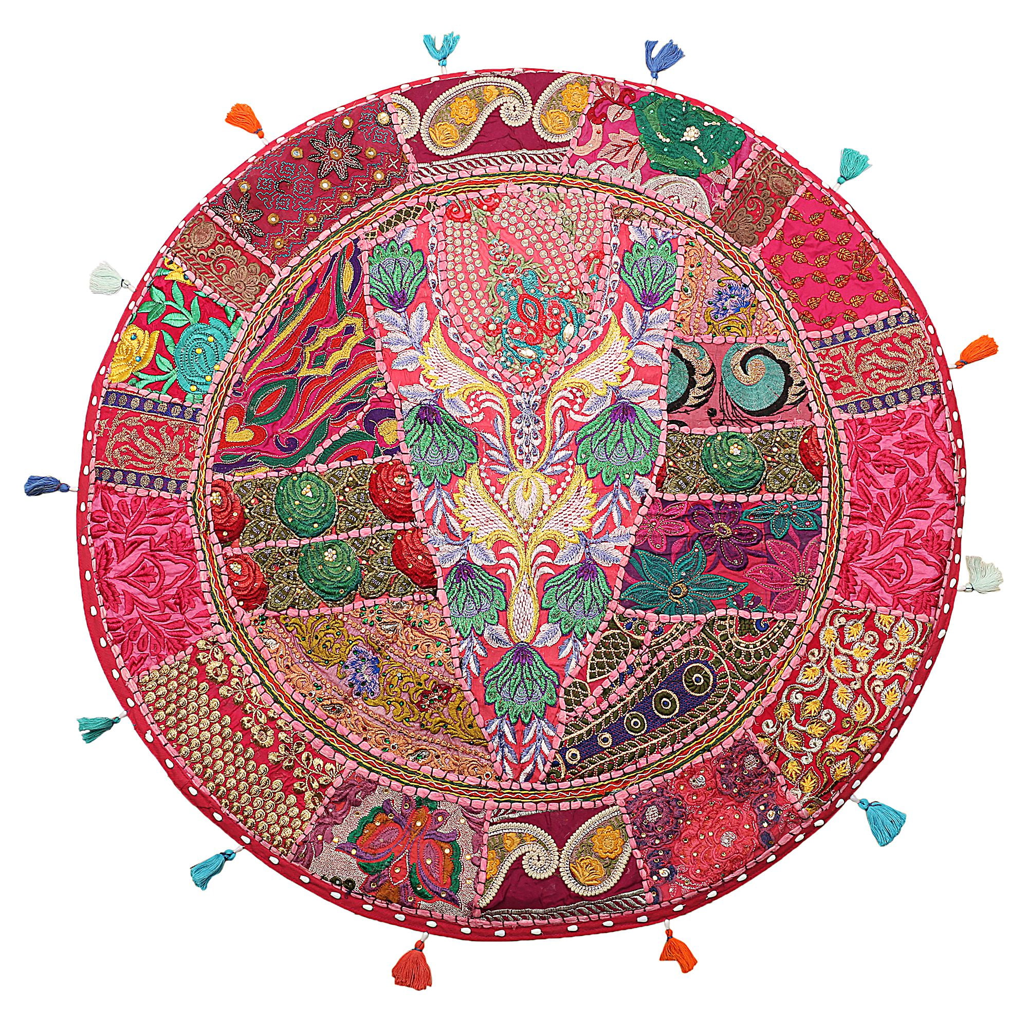 Stylo Culture Bodensitzkissen 80cm - Indisch Bestickt Boho Patchwork Baumwolle