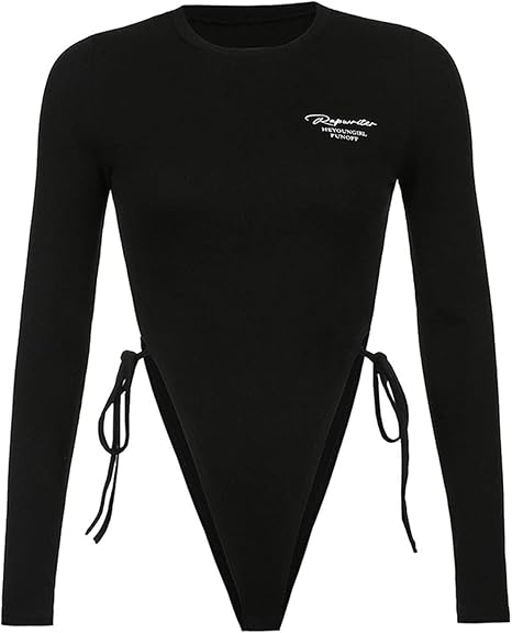 Damen Langarm Body Baumwolle - Stretch Body Mit Rundhals Schwarz/Weiß