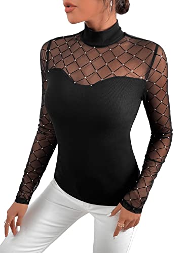 GORGLITTER Damen Body Langarm - Eleganter Criss Cross Bodiesuit Mit Stehkragen