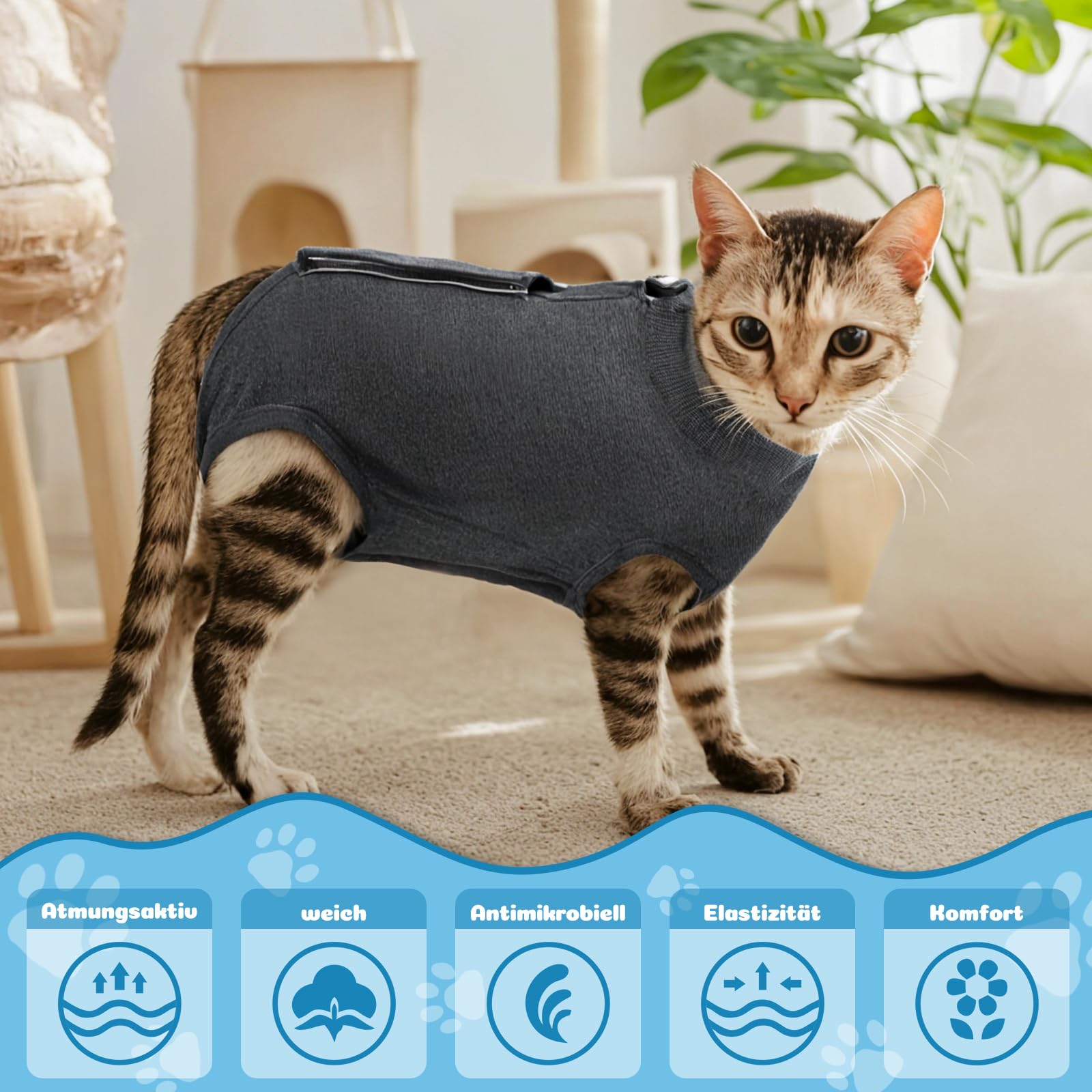 Ohje, nach der OP ist es oft stressig – aber dieser Katzen-Body von AYVRUOP macht’s leichter! Er ist die perfekte Alternative zu diesen klobigen Halskragen oder Kegeln. Deine Katze kann sich damit viel natürlicher bewegen, ohne ständig an der Wunde zu lecken. Der Stoff ist superleicht und atmungsaktiv, fast wie eine zweite Haut. So fühlt sich dein Stubentiger nicht eingeengt und kann trotzdem normal fressen, spielen oder schlafen. Der Body schützt zuverlässig vor Infektionen und verhindert, dass andere Tiere stören. Das Beste: Das selbstklebende Design auf dem Rücken macht An- und Ausziehen supereinfach. Er ist verstellbar und passt sich damit perfekt an. Nach dem Einsatz einfach in die Waschmaschine stecken – praktisch, oder? Ideal für die Zeit nach Kastrationen oder anderen OPs. So wird die Heilung angenehmer und schneller. Deine Katze dankt’s dir!