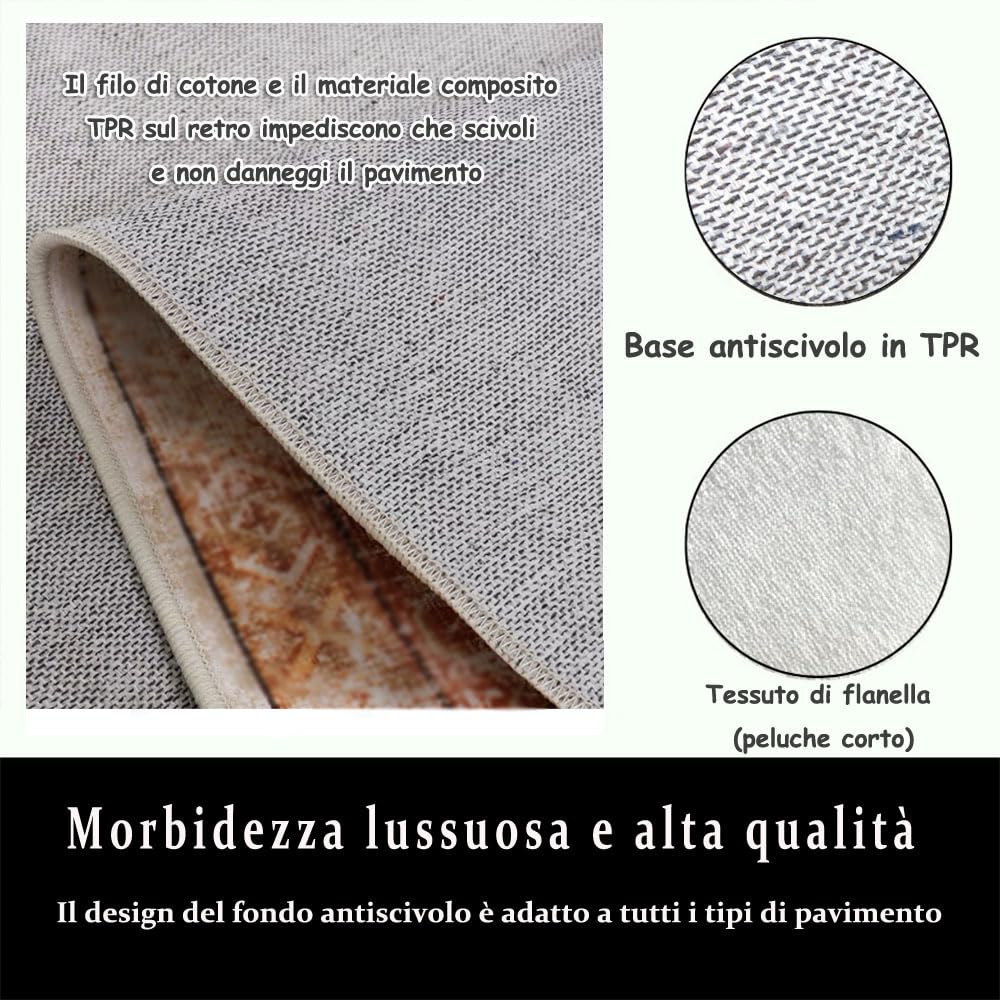 Runder Teppich Wohnzimmer - Bohemian Design 60cm, Waschbar & Rutschfest