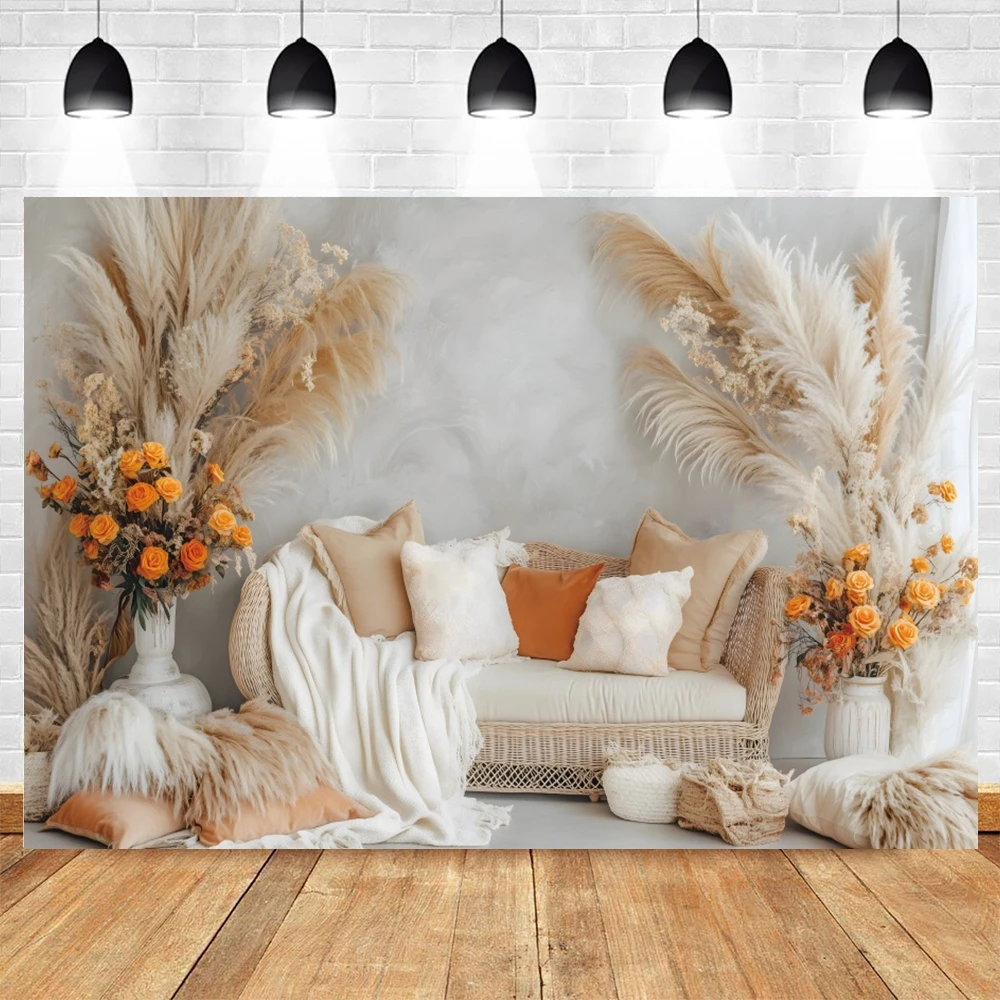 AIBIIN Boho Fotohintergrund - Pampas Ballon Wanddeko Für Hochzeit & Feiern