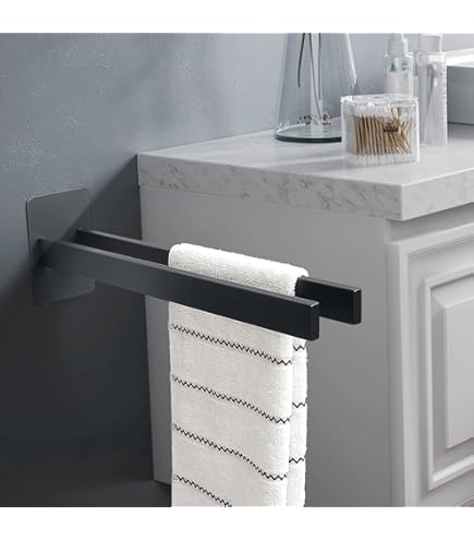 Schluss mit Bohrlöchern! Dieses 4er-Set Handtuchhalter von ellay home bringt Ordnung in dein Bad - ganz ohne Werkzeug. Einfach die Schutzfolie abziehen, fest andrücken und fertig! Der originale 3M-Kleber hält sicher bis zu 6 kg, auch bei täglicher Nutzung. Aus robustem, pulverbeschichtetem Edelstahl sind die Haken absolut rostfrei und perfekt für feuchte Räume geeignet. Ob im Bad, in der Küche oder im Flur - überall sorgen sie für mehr Ordnung. Und das zeitlose Design in Schwarz passt zu jeder Einrichtung. Einfach genial!