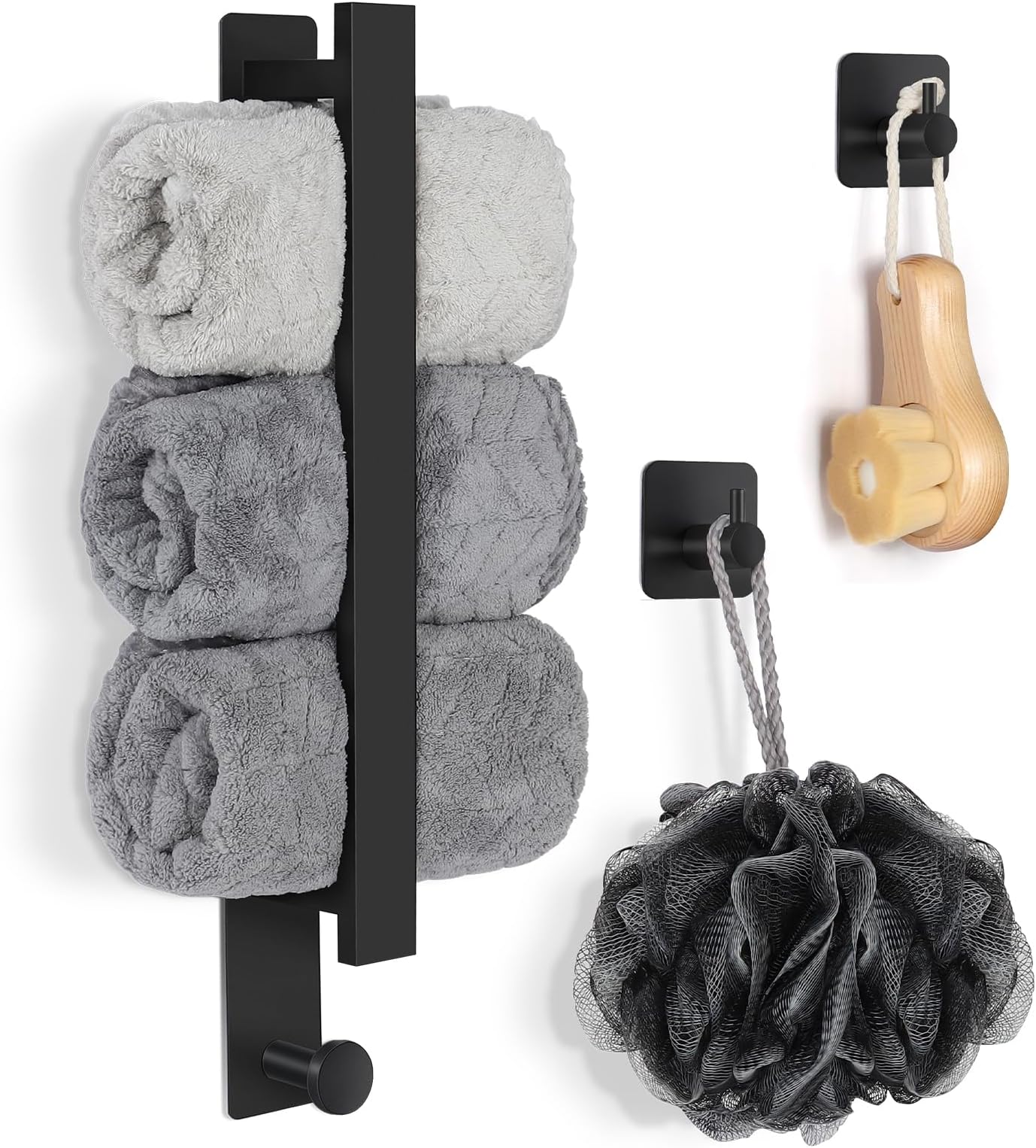 Ellay Home Handtuchhalter Ohne Bohren - 4er Set In Schwarz Mit 3M Kleber