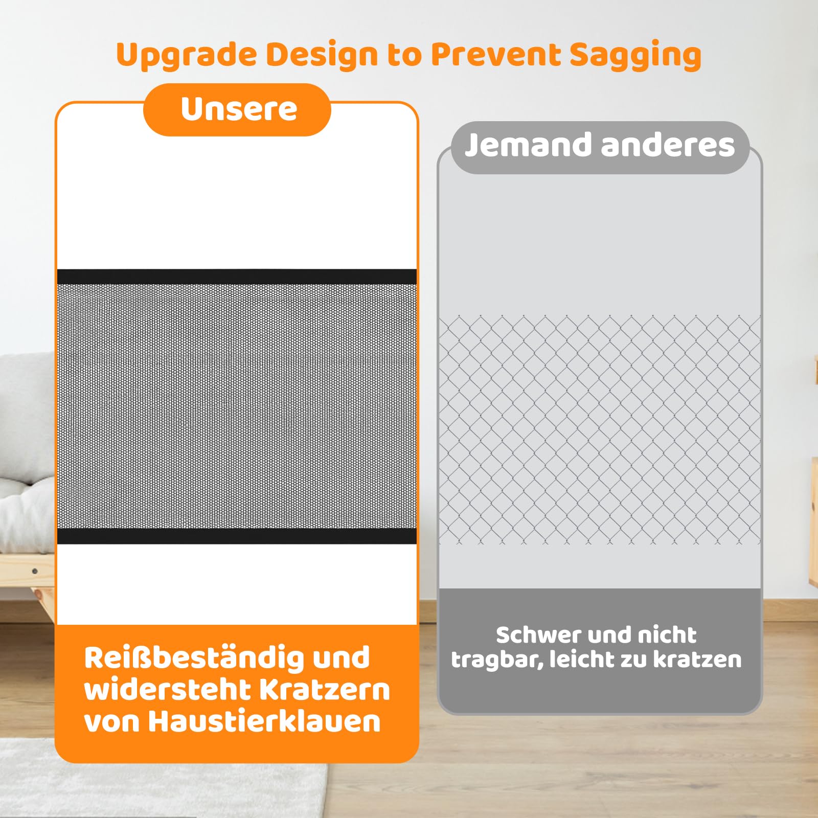 Endlich Sicherheit für die Kleinen und die Vierbeiner! Dieses praktische Schutzgitter lässt sich ganz ohne Bohren installieren - super für Mieter oder wenn man keine Löcher in die Wand machen will. Einfach die 4 Klebehaken anbringen und das Gitter einhängen. Passt für Türöffnungen und Treppen bis 110cm Breite. Die Ausziehstangen machen es super flexibel für verschiedene Stellen in der Wohnung. Aus stabilem, teilweise transparentem Material - dein Kind oder Haustier ist sicher, aber kann trotzdem durchgucken. Wenn du es nicht brauchst, klappst du es einfach zusammen und verstaut es platzsparend. Perfekt für Treppenaufgänge, Zimmertüren oder als Absperrung für bestimmte Bereiche. Damit hast du immer ein Auge auf die Kleinen, ohne dass sie in gefährliche Bereiche kommen. Einfach aufbauen, wenn du es brauchst, und schnell wieder abbauen. Das Gitter hält auch neugierigen Katzen stand! Ein echter Lebensretter für alle Eltern und Haustierbesitzer. Einfach genial und so praktisch!
