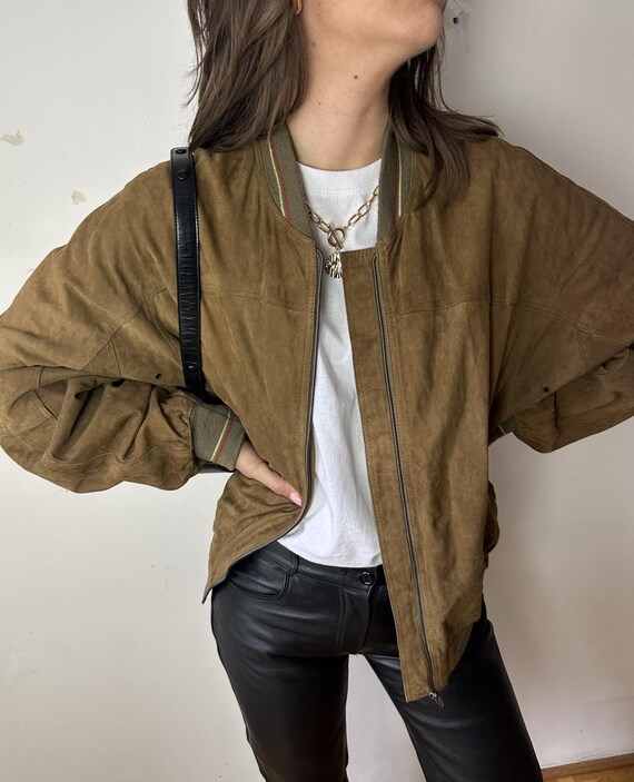 MOKBAY Damen Wildleder Bomberjacke - Oversize Vintage Style Für Herbst & Winter