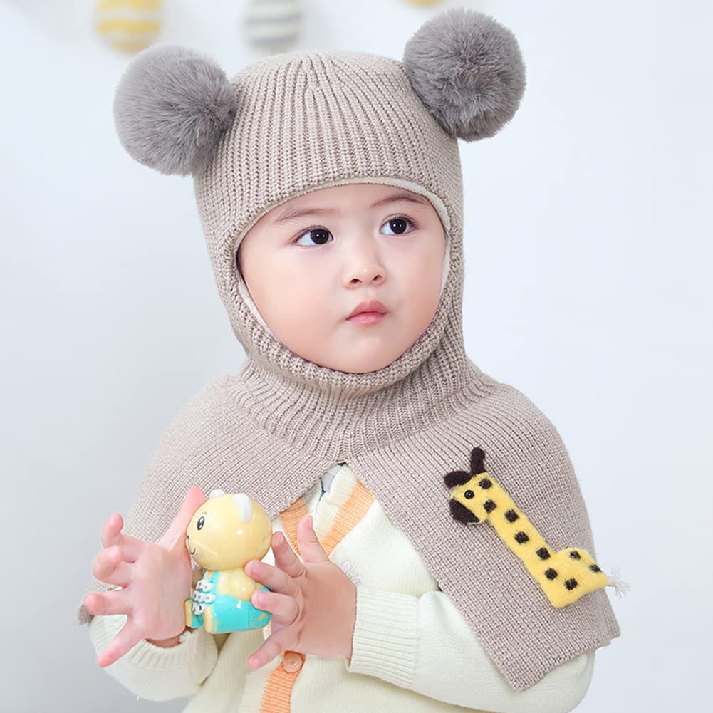 Oh wie süß! Diese Baby-Schlupfmütze wärmt deinen kleinen Schatz den ganzen Winter über. Aus weichem Polyester mit kuscheligem Fleecefutter innen - super weich auf der zarten Babyhaut. Die zwei niedlichen Bommeln wackeln fröhlich mit, wenn dein Baby läuft. Besonders praktisch: Es ist eine 2-in-1-Lösung aus Mütze und Schal in einem! Schützt komplett Kopf, Hals und Ohren vor Wind und Kälte. Perfekt für Spaziergänge, Kindergarten oder Spielplatz. Kopfumfang 40-45cm, also ideal für die Kleinsten. In dezentem Grau passt sie zu jeder Winterjacke. Einfach anziehen und dein Baby ist bereit für jedes Abenteuer - ob Schneemann bauen oder Schlitten fahren!