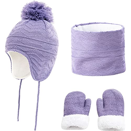 Bekecidi Kinder Winter-Set - Süße Bommelmütze Mit Schal & Handschuhen - Warmes Strick-Set Für 1-5 Jahre