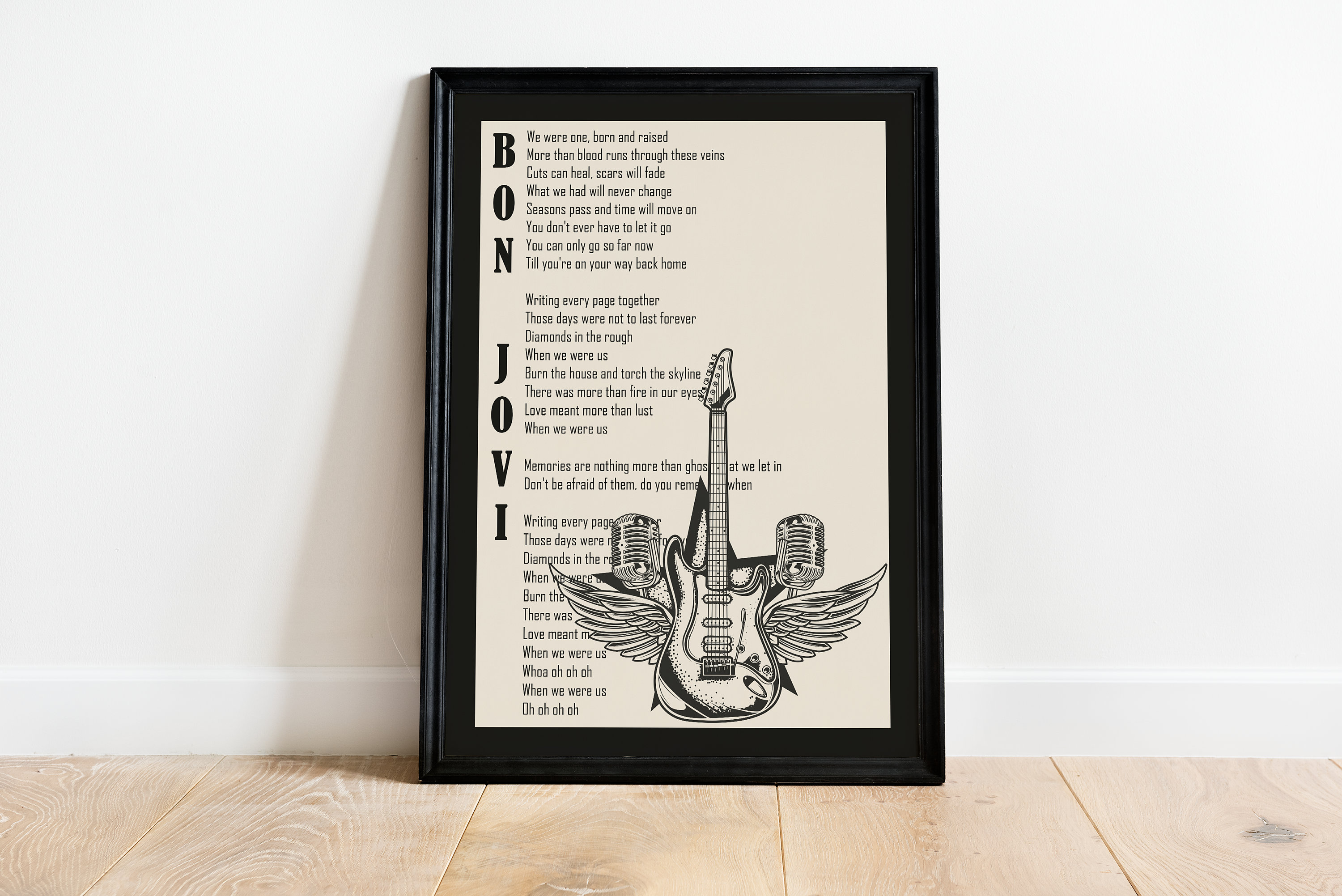 Bon Jovi Lyrics Leinwanddruck - Wandbild 20x30cm Für Musikfans