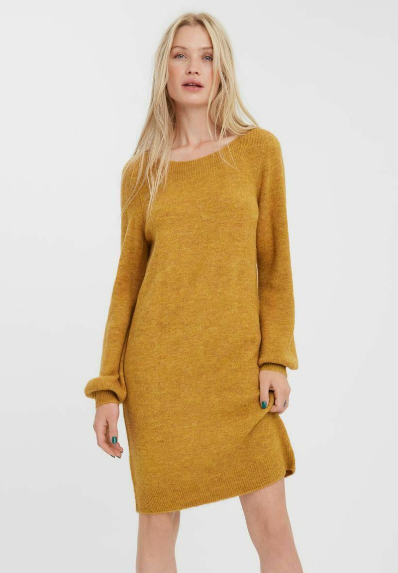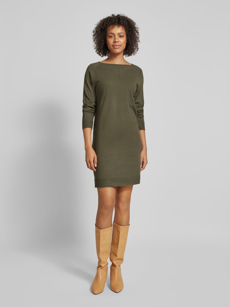 Damen Strickkleid Mit U-Boot-Ausschnitt Und Langen Ärmeln