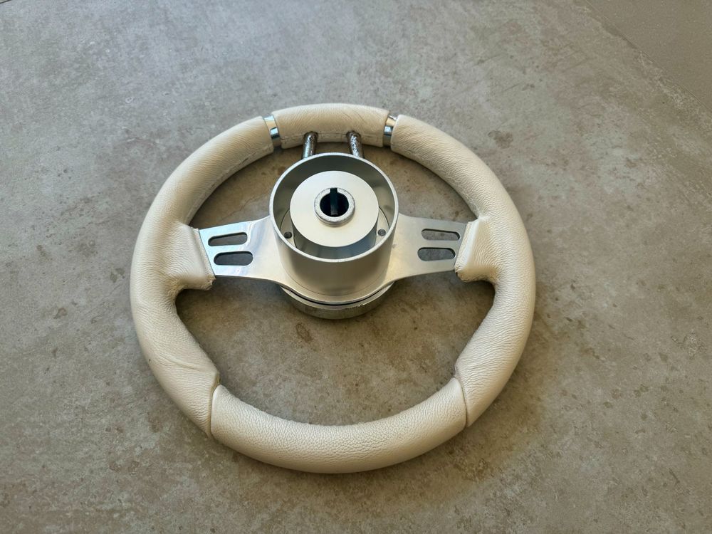 Hey Bootsliebhaber! 🚤 Suchst du ein Steuerrad, das nicht nur gut aussieht, sondern auch was hermacht? Dann ist das MÖWE Marine Lenkrad Emden genau dein Ding!\n\nStell dir vor: Ein massives Aluminium-Lenkrad, komplett CNC-gefräst im 6-Achsen-Verfahren. Das ist keine Billigware, sondern echte Handwerkskunst! Die polierte Oberfläche glänzt einfach mega und liegt super in der Hand.\n\nTechnische Daten:\n• Durchmesser: 350 mm\n• Höhe: 85 mm\n• Gewicht: 2,5 kg - richtig wertig!\n• Farbe: Beige / Aluminium poliert\n• Mit fein verzahntem Adapter\n\nDas Beste: Keine sichtbaren Schrauben! Die zentrale Abdeckung ist als Stecksystem ausgeführt - sieht einfach clean aus. Und das Lenkrad passt auf alle gängigen Teleflex und Ultraflex Lenkungen. Egal ob du ein Bayliner, Sea Ray, Sunseeker oder anderes Boot hast - hier bist du auf der sicheren Seite.\n\nKompatible Lenksysteme:\n• Teleflex Light Duty\n• Teleflex Safe-T Quick Connect\n• Teleflex NFB 4.2 Rotary\n• Ultraflex Compact-T-Steuerung\n• Ultraflex T85 und T67\n• Und viele mehr!\n\nWarum dieses Lenkrad? Ganz einfach: Es fühlt sich an wie in einer Luxusyacht, ist aber zum fairen Preis zu haben. Life is too short - gönn dir dieses Stück Boots-Luxus!\n\nPerfekt für:\n• Powerboot-Besitzer\n• Yacht-Liebhaber\n• Alle, die ihr Boot aufwerten wollen\n• Bootsumbauten und Renovierungen\n\nHol dir jetzt dieses Premium-Lenkrad und erlebe, wie sich dein Boot von innen heraus verwandelt!