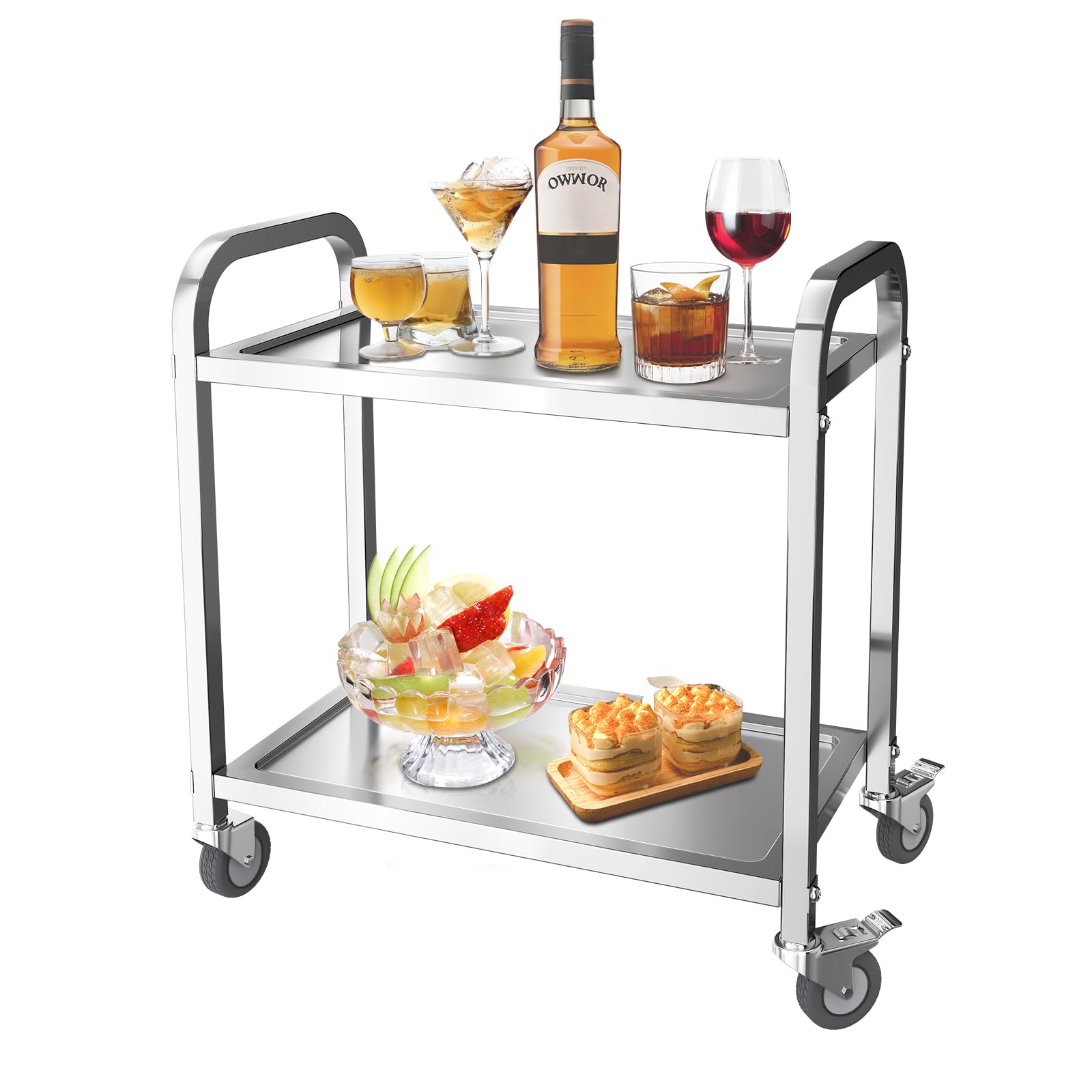 MOOTACO Servierwagen Edelstahl | 3 Borde 4 Räder | Gastro Küchenwagen 80cm Hoch