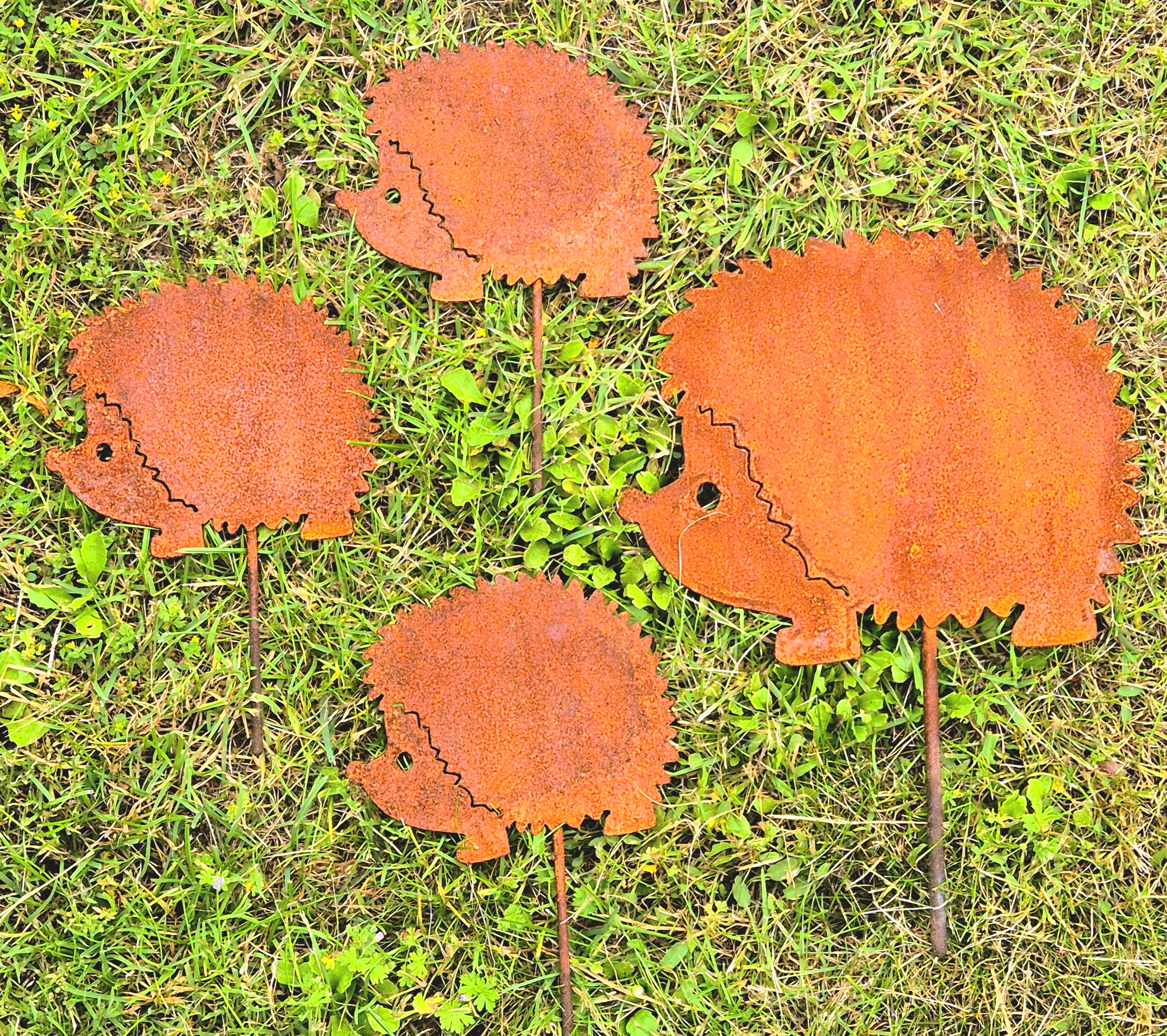 Wie süß sind denn diese beiden Igel? Das Set besteht aus einer Mama und einem Baby - zusammen auf einem Ahornblatt. Gefertigt aus Metall in Edelrost-Optik, wirken sie sofort wie ein natürlicher Teil deines Gartens. Maße: 23x15 cm und 13x8 cm, also ideal für Beet, Terrasse oder Vorgarten. Die Figuren sind absolut wetterfest und entwickeln mit der Zeit eine noch schönere Patina. Einfach hinstellen und sich freuen! Ob zwischen Blumen, neben der Bank oder als heimlicher Blickfang - diese Igel bringen Leben in dein Grün. Tolle Geschenkidee für Garten-Fans oder alle, die es gemütlich lieben.