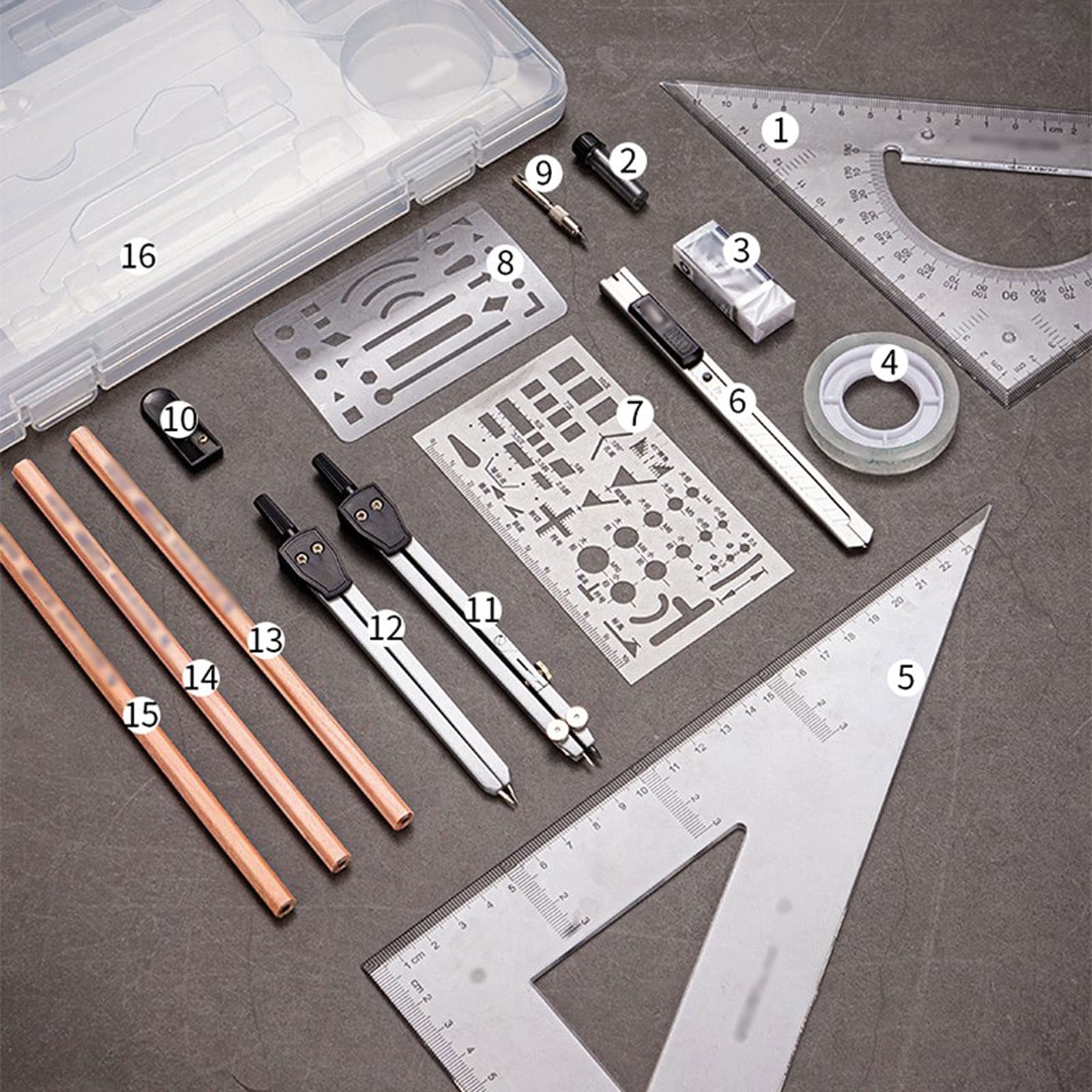 16-tlg. Geometrie-Set Mit Box - Für Schule, Architektur & Technik
