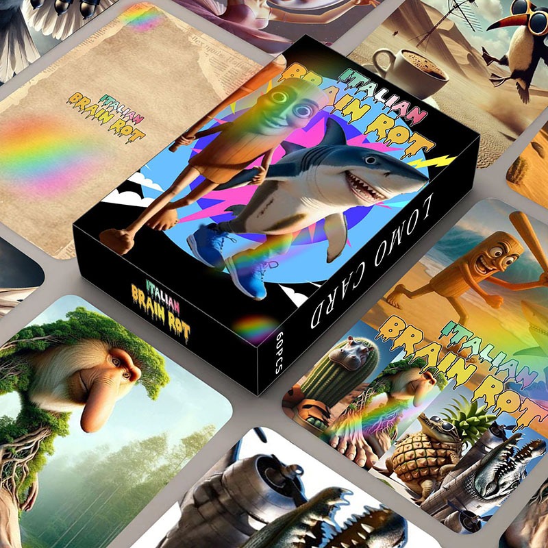 60 Italian Brainrot Sammelkarten + 32 Sticker - Tung Tung Tung Tung Sahur Figuren
