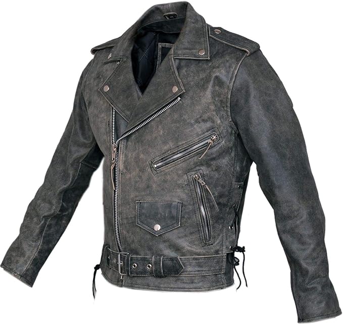 Brando Herren Lederjacke Vintage - Motorradjacke Schwarz Aus Echtleder