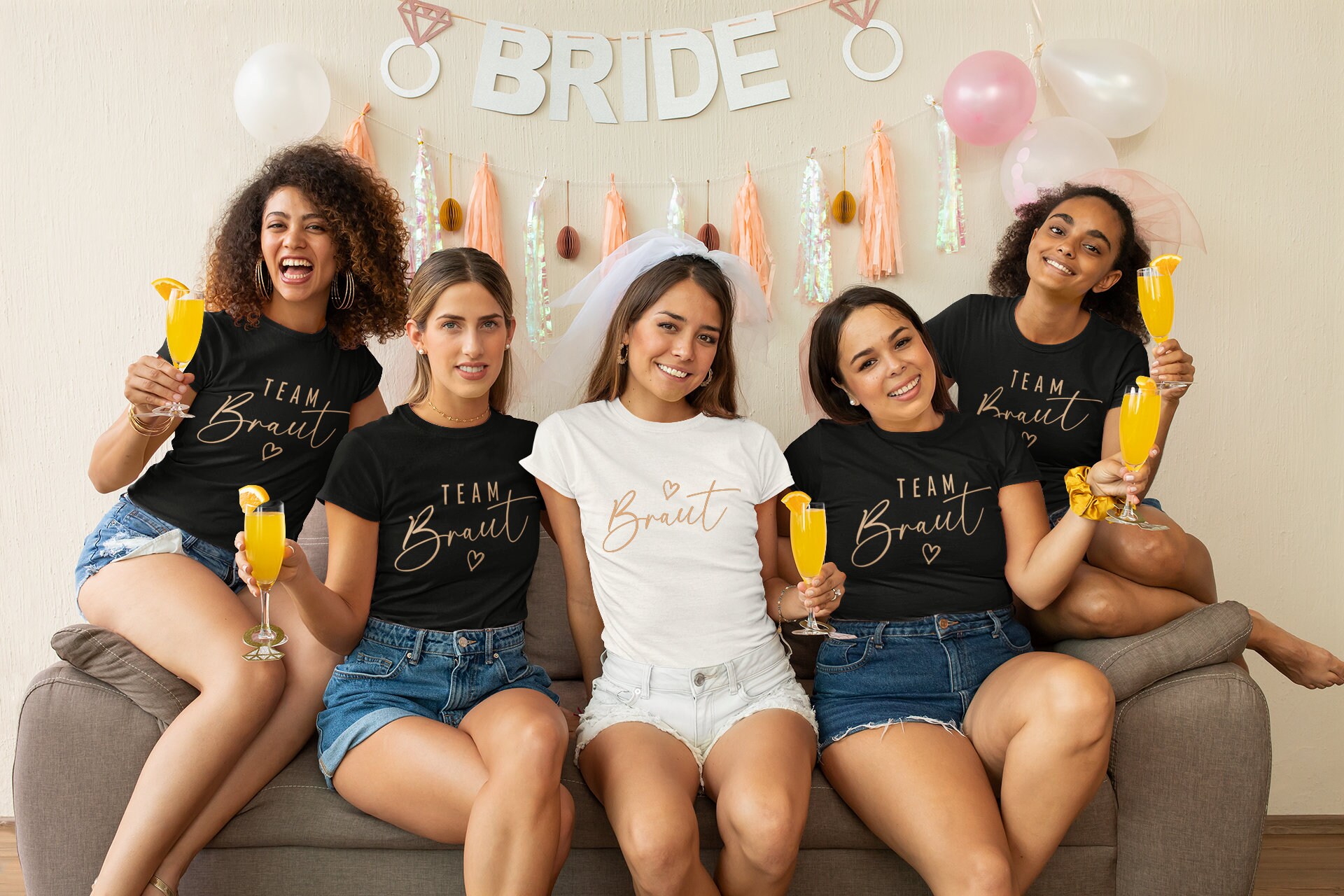 JGA Tshirt Set Team Braut - Braut & Brautjungfern Shirts Mit Armband, Brille & Tattoos