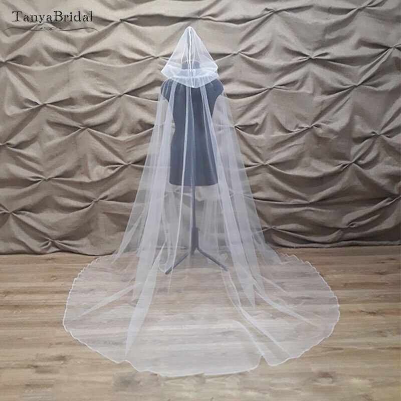 Braut Cape Tüll Umhang Mit Kapuze - Elfenmantel Für Hochzeit Mit 3m Schleppe