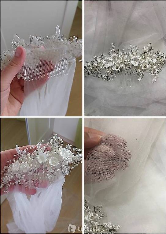 Verwandle deinen Hochzeitstag in ein märchenhaftes Erlebnis mit diesem wunderschönen Brautschleier! Der elegante weiße Schleier aus weichem Tüll ist mit einem zarten Blumenkranz und glitzernden Perlen verziert. Mit einer Gesamtlänge von 95cm und einer Breite von 20cm passt er perfekt zu den meisten Frisuren - ob lange oder kurze Haare, glatt oder lockig. Der Blumenkranz sitzt sicher auf dem Kopf und rutscht nicht, während der Schleier romantisch herabfließt. Nicht nur für Bräute geeignet, sondern auch für Geburtstagsfeiern, Junggesellinnenabschiede, Fotoshootings oder Festivals. Einfach im Haar befestigen und strahlen - mehr Brautglück geht kaum! Perfekt für die moderne Braut, die Wert auf Eleganz und Komfort legt.