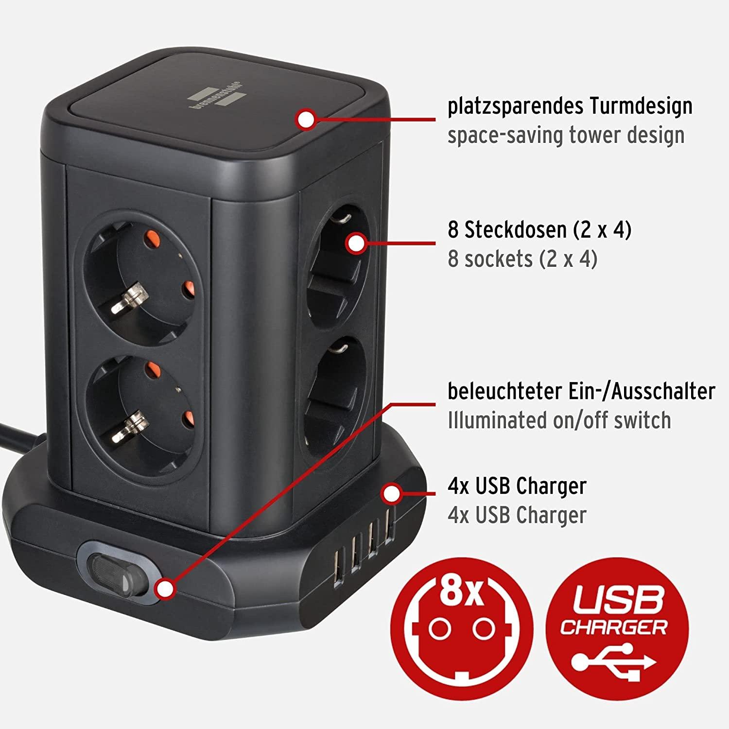 Brennenstuhl Steckdosenturm 9-Fach - Mit USB & RGB Beleuchtung