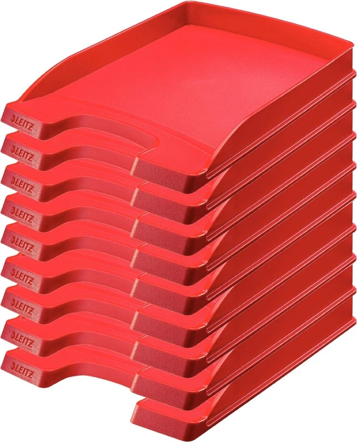 Mann, diese Briefablagen sind praktisch! Im 10er Pack mit 20 gratis Etiketten - perfekt für's komplette Büro! Maße: 25,5x7x35,7 cm - ideal für A4 Dokumente, Zeitschriften und Ordner. Aus robustem Kunststoff - hält auch volle Belastung aus! Super einfach zu stapeln - platzsparend und ordentlich! Die erhöhten Seitenwände geben extra Stabilität. Vorne abgeschrägt - du kommst easy an deine Dokumente ran! Passt zur ganzen Leitz Plus Serie - erweiterbar wie du willst! Für Homeoffice, Schule oder Firma - überall einsetzbar! Macht jeden Schreibtisch sofort aufgeräumter! Einfach beschriften und sortieren - keine Sucherei mehr! Farbe: knalliges Rot - sieht auch noch gut aus! Einfach ein Klassiker der Ordnung hält!