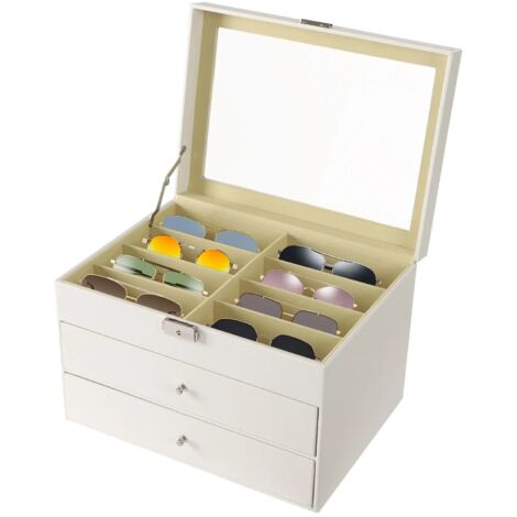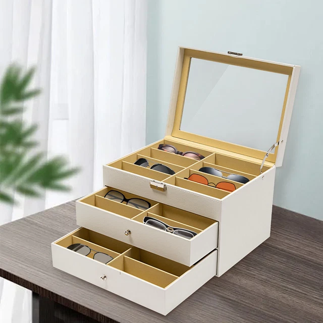 FROPIJ Brillenetui 24 Fächer - 4 Etagen Vitrine Mit Glasdeckel