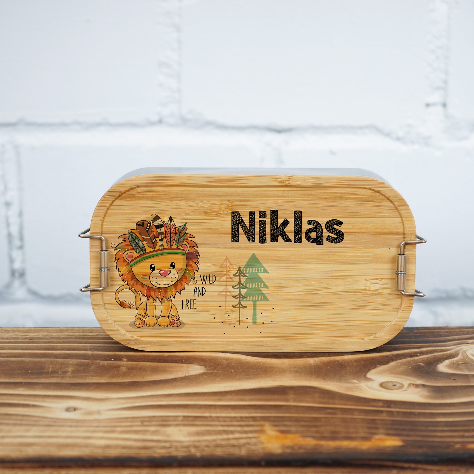 Personalisiert Brotdose Mit Namen - 700ml Metall Lunchbox Mit Bambusdeckel